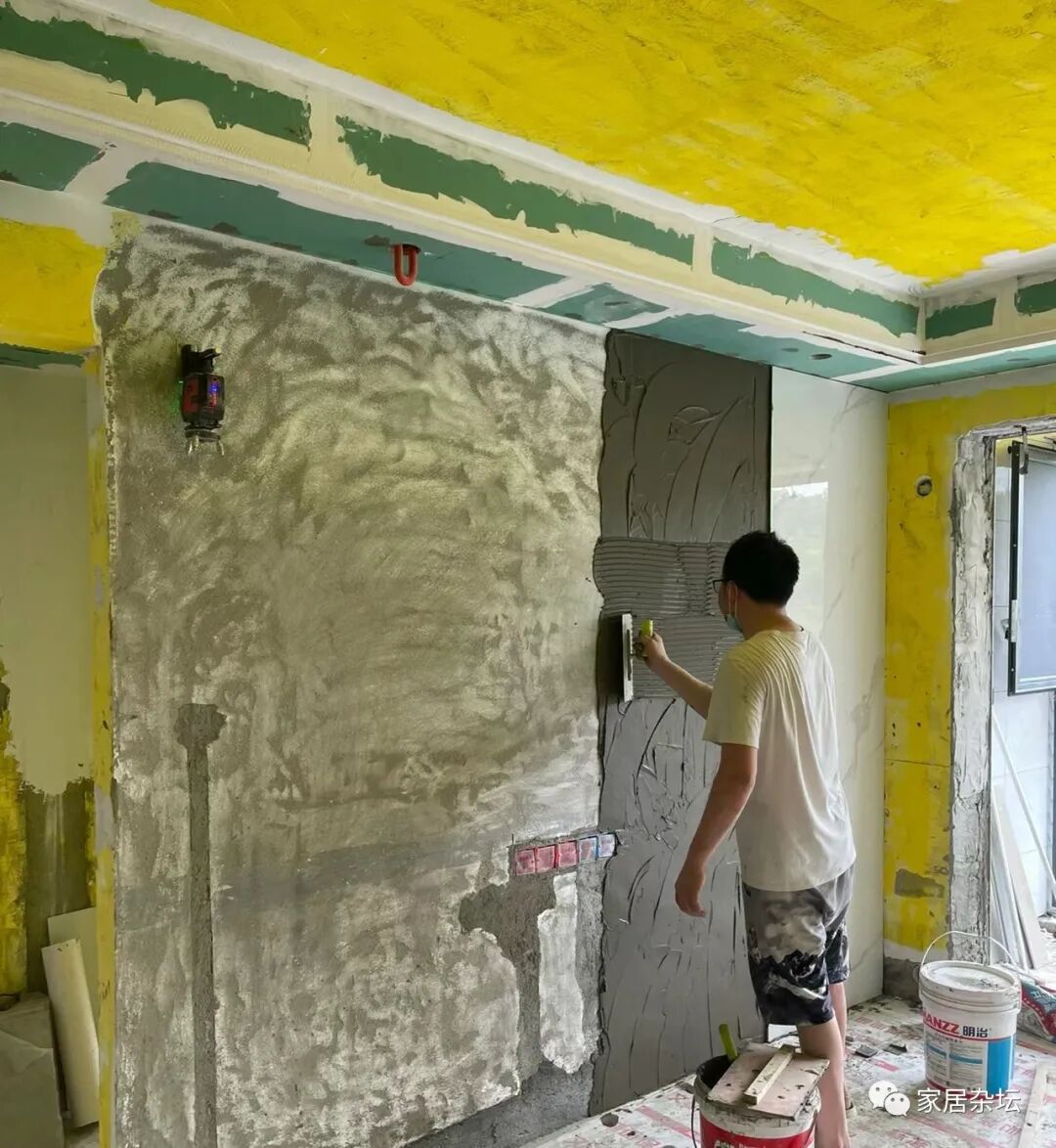 ②、基层涂抹底涂。这样是保证墙面可以与粘接剂有效的粘接。