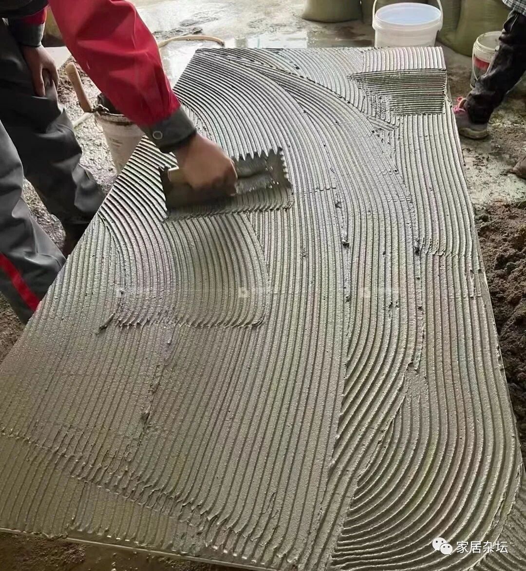 因为我们粘贴的岩板规格尺寸比较大,如果粘不牢,出现空鼓、脱落,那么就很严重了。