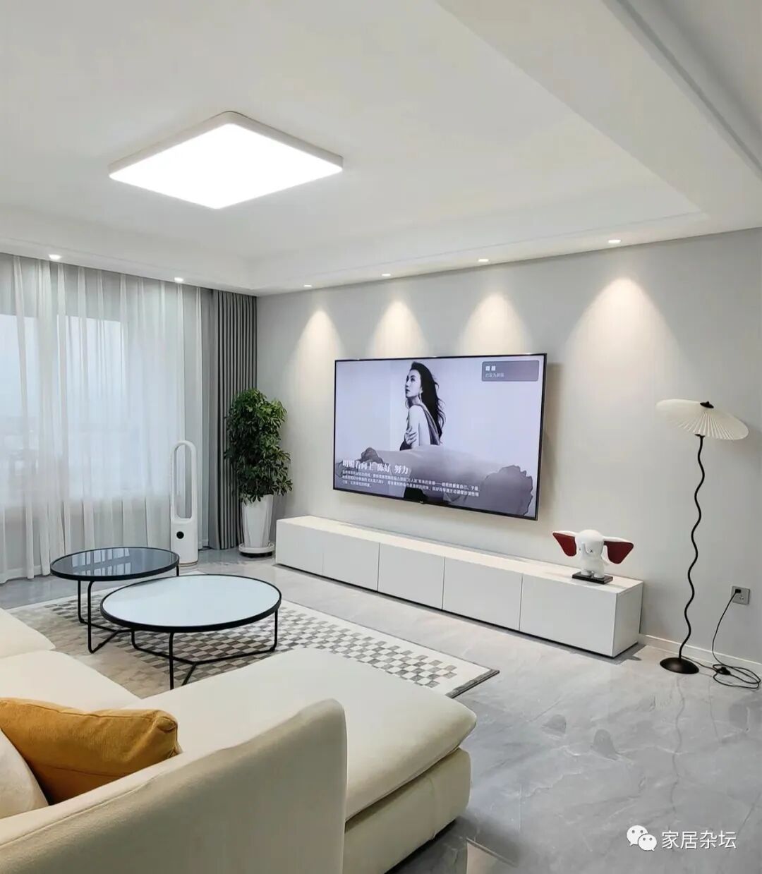 其实对于客厅而言,除了地面的卫生家务量,就是电视背景墙区域的家务量。