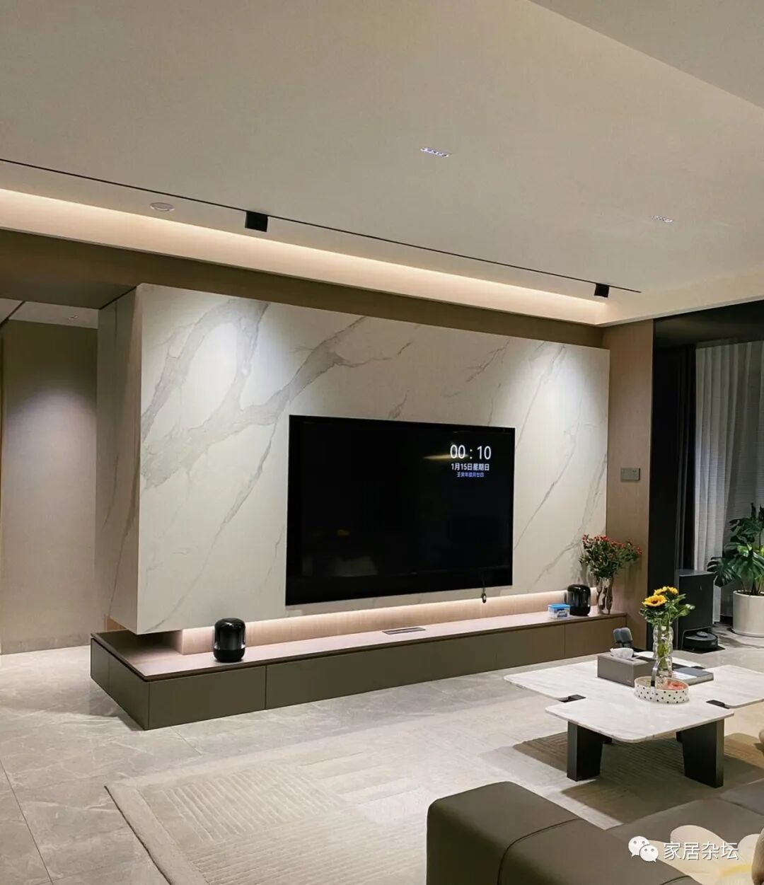 岩板电视背景墙,也是建议大家避开的一种电视背景墙。