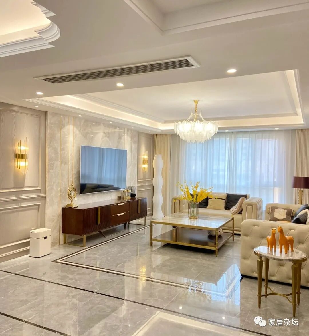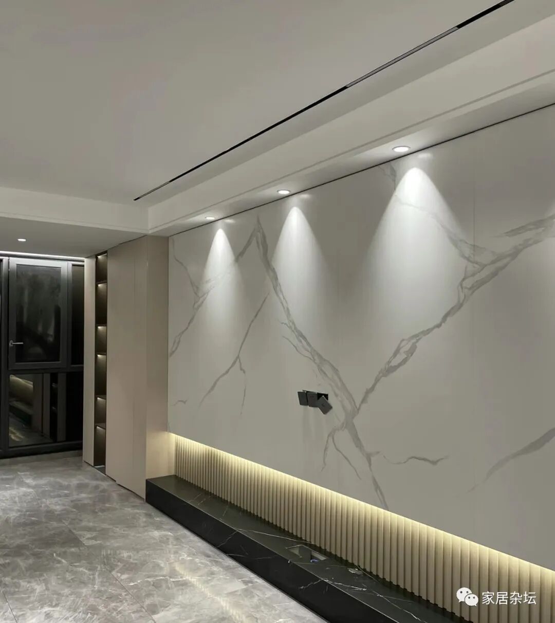 岩板电视背景墙装修完的效果,确实档次很高,有大堂装修的感觉。