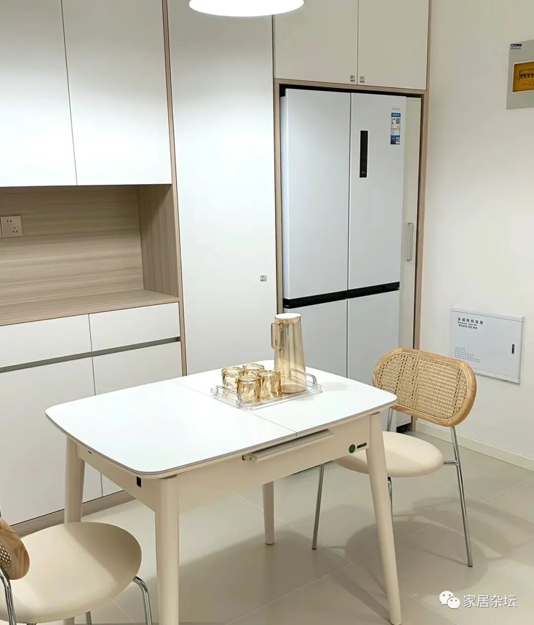 但是,这个时候很多朋友就会发现,家里餐厅比较小,摆了餐桌以后,甚至都过不去人了。