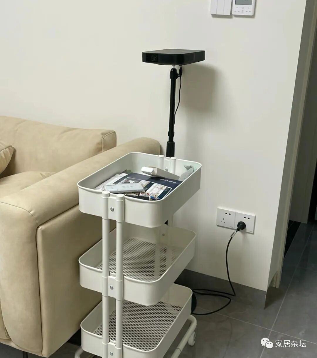 ④、节省客厅的地方。因为对于收纳小推车来讲,也可以很方便移动。在不用的时候,我们就可以把它移动到阳台的某个角落,收起来就可以了。