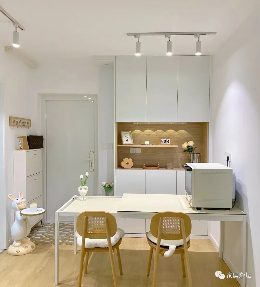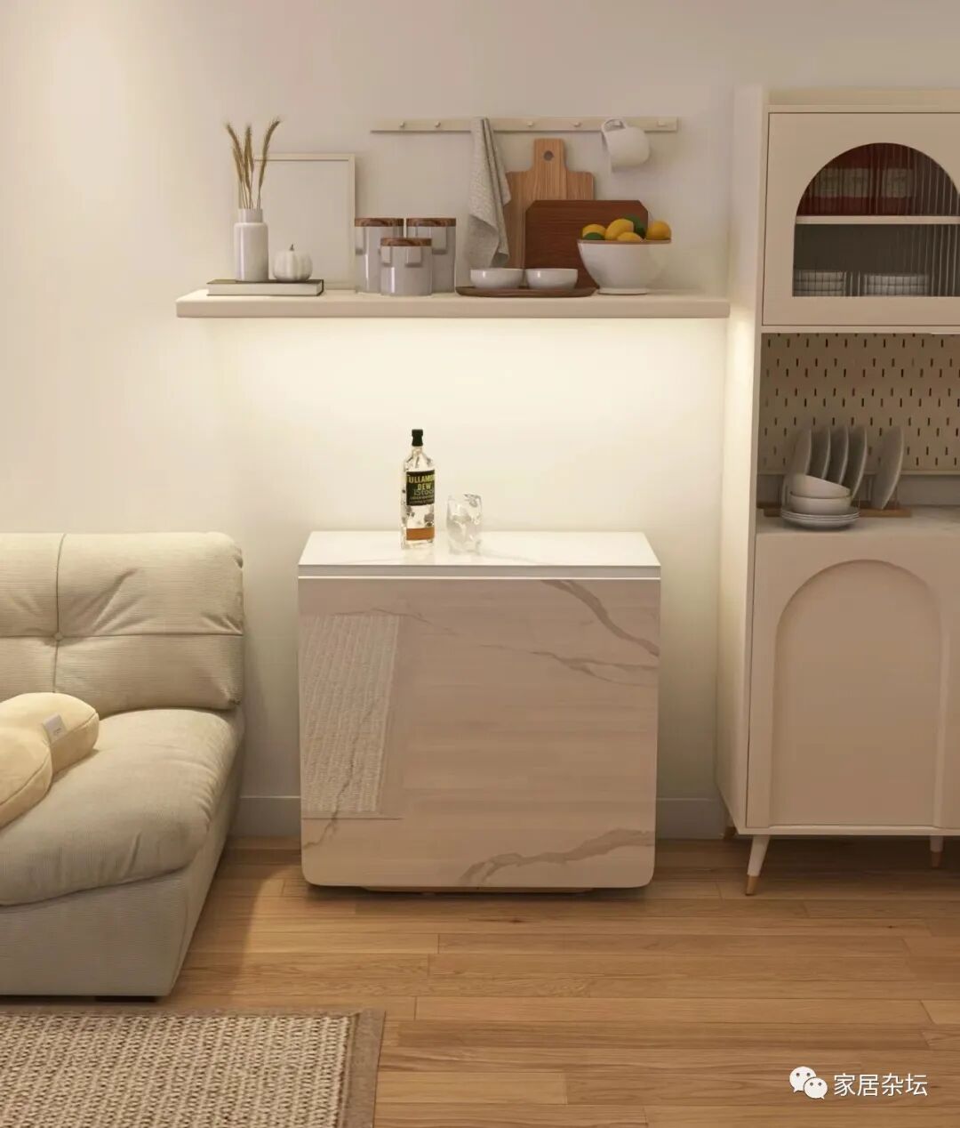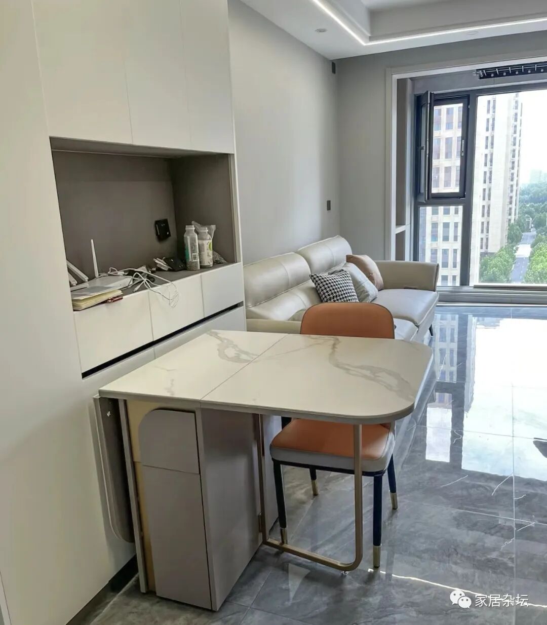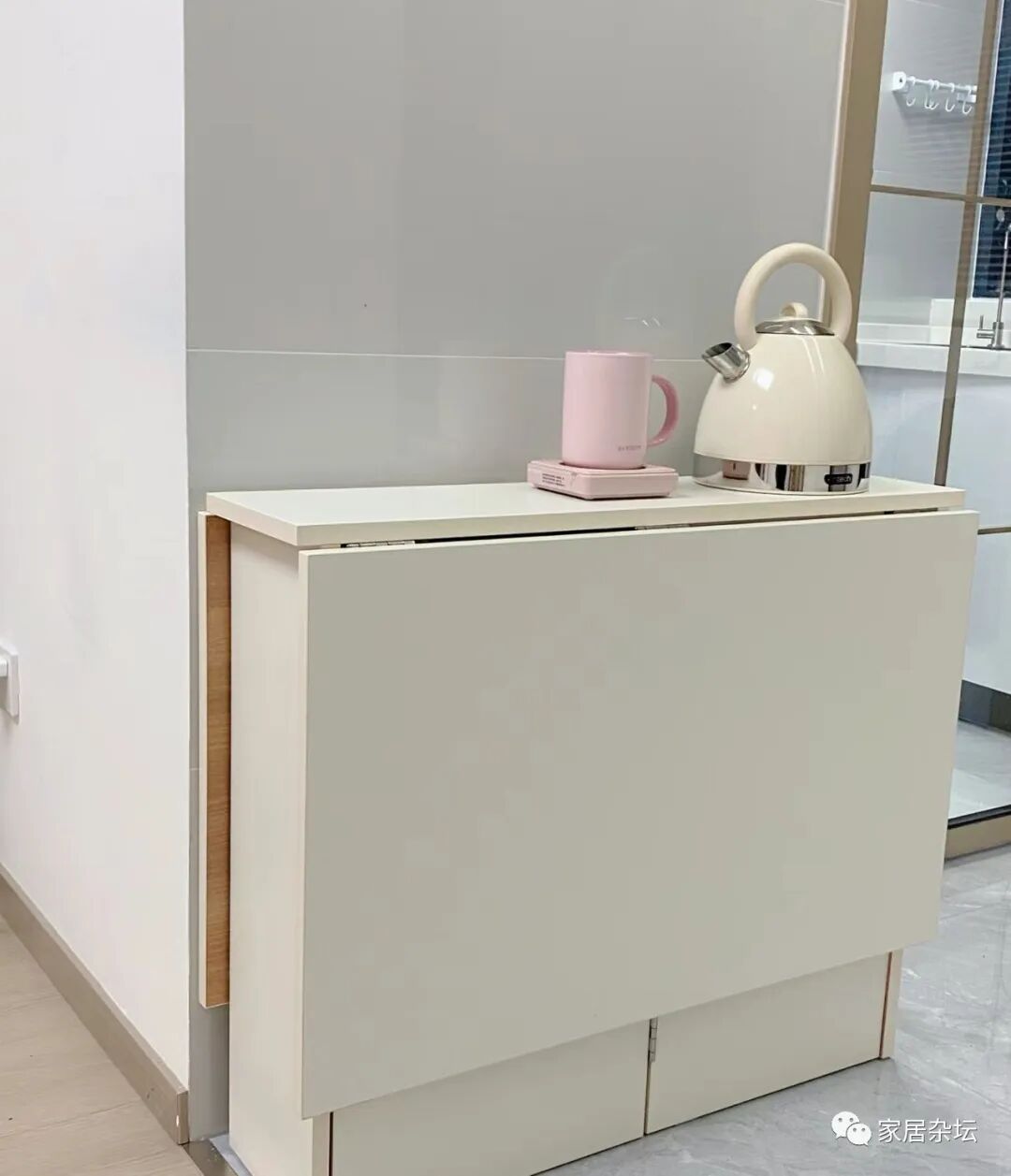 因为,对于小客厅来说,折叠式餐桌还是非常具有优势的: