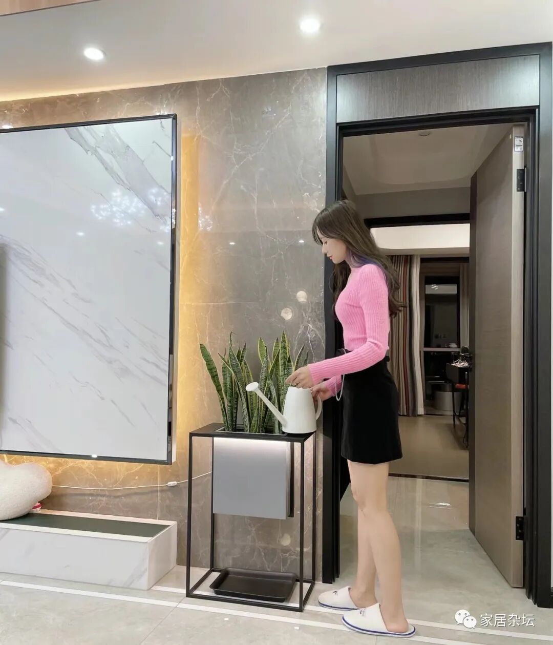 因为如果我们选择的鞋柜的深度比较深,你会发现客厅明显的变小了,客厅会非常的紧凑,非常拥挤。
