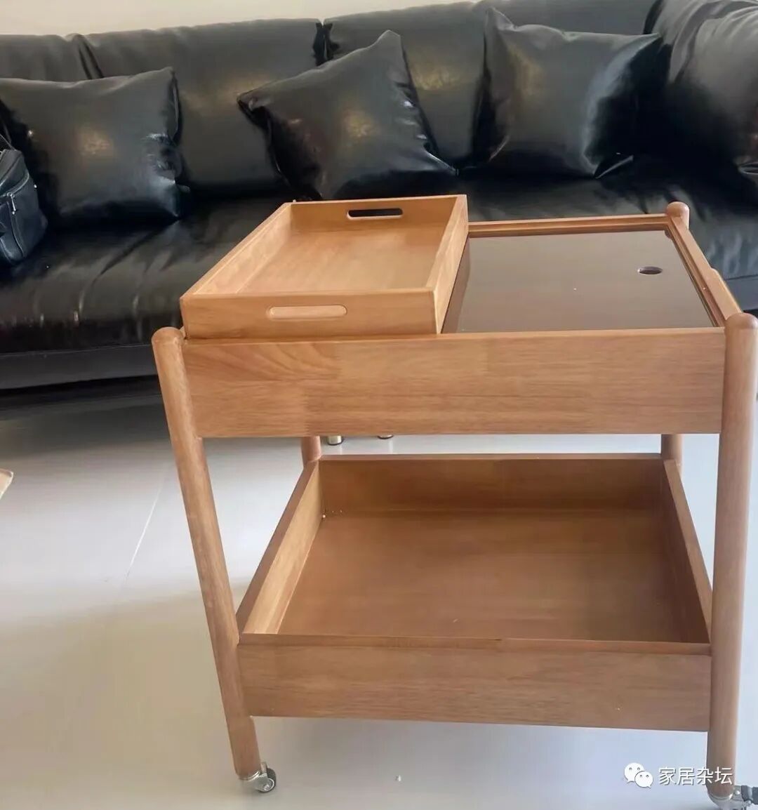 其实,收纳小推车与实木万向轮小茶几的功能有些类似。