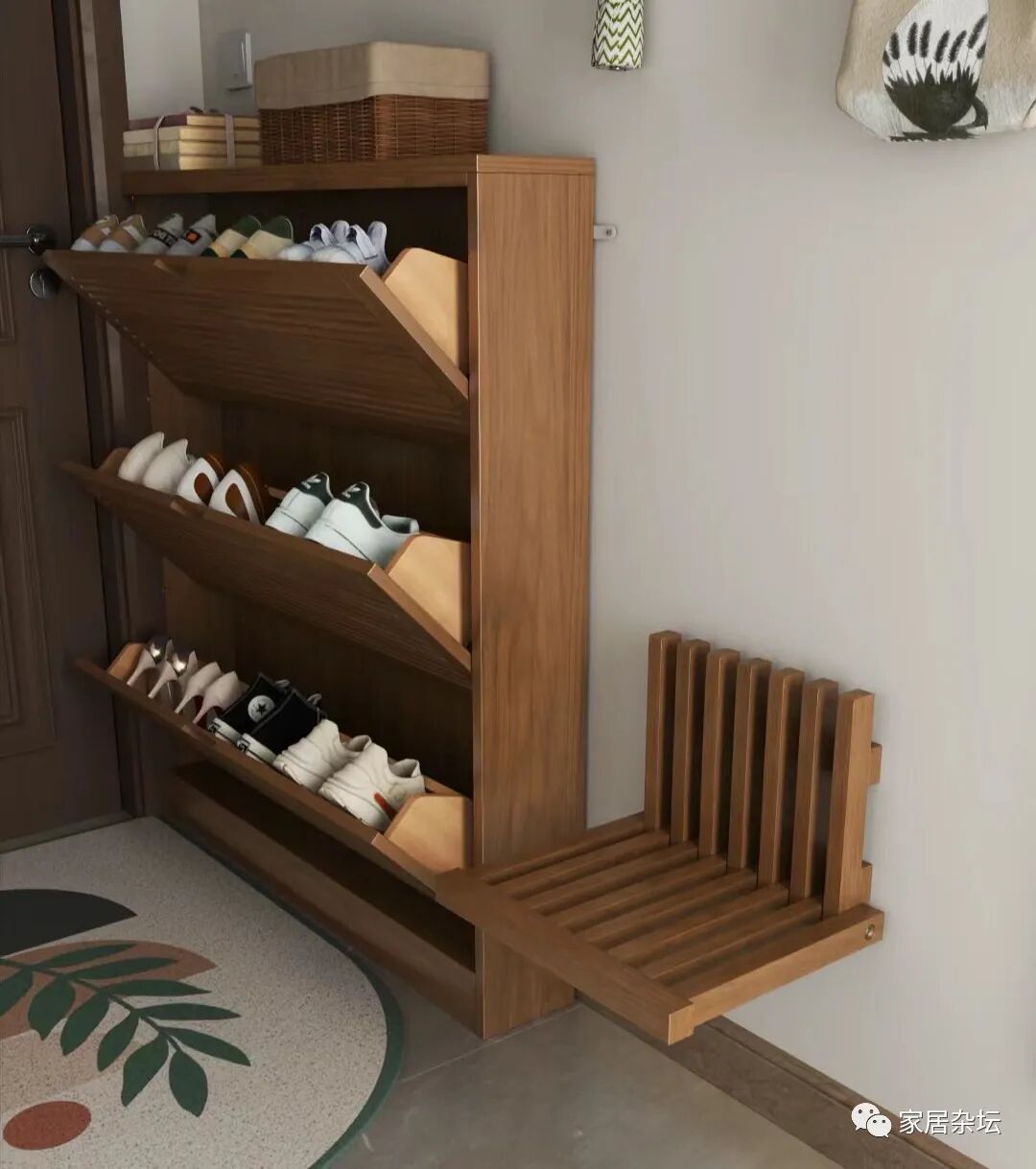 所以说,小的客厅安装折叠式鞋柜,是非常有优势的: