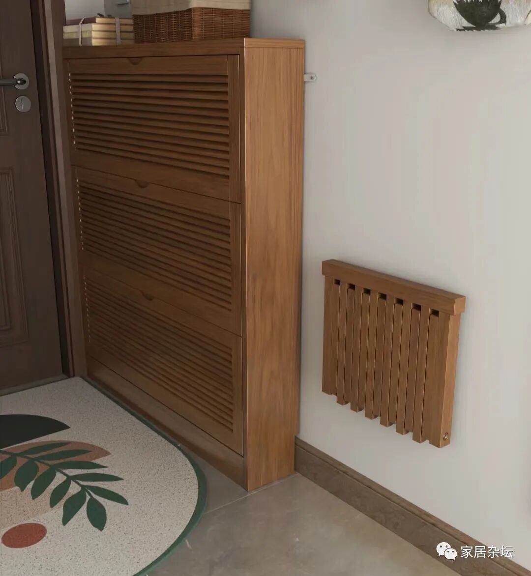 ②、材质的选择。对于入户式的鞋柜,如果是定制的话,可以选择生态板或者是颗粒板;如果是后期选择安装的,那么可以选择指接木板或者是实木板。