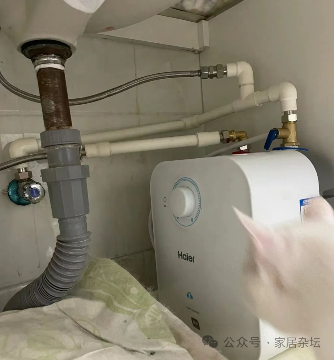 ①、水槽下面安装不下。像我们水槽下面有水槽的下水管,还有的有净水器等等,就导致小厨宝没有地方安装。