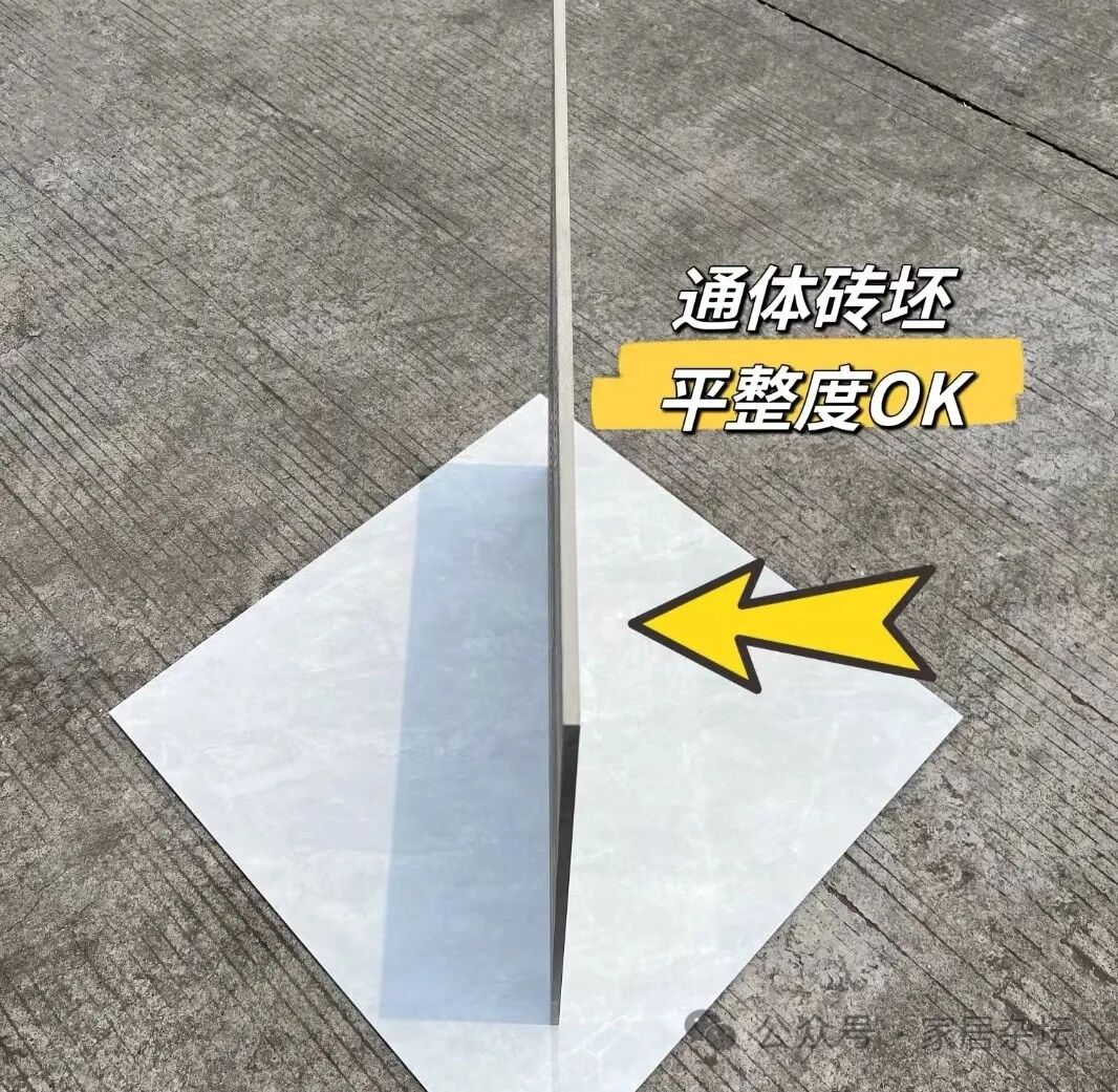 ①、看平整度。可以将两块同样的瓷砖,表面和表面对在一起,然后对光看。如果几乎不漏光,那么平整度很好;如果漏光很严重,说明平整度很差。