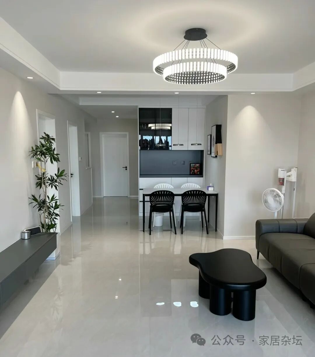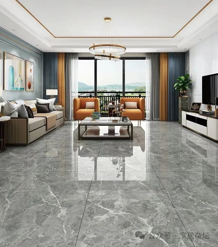 ①、对于大多数家庭的客厅和餐厅的地面,我们可以选择浅灰色的地砖。浅灰色瓷砖,与各样的风格装修都很搭,而且显得很高级。
