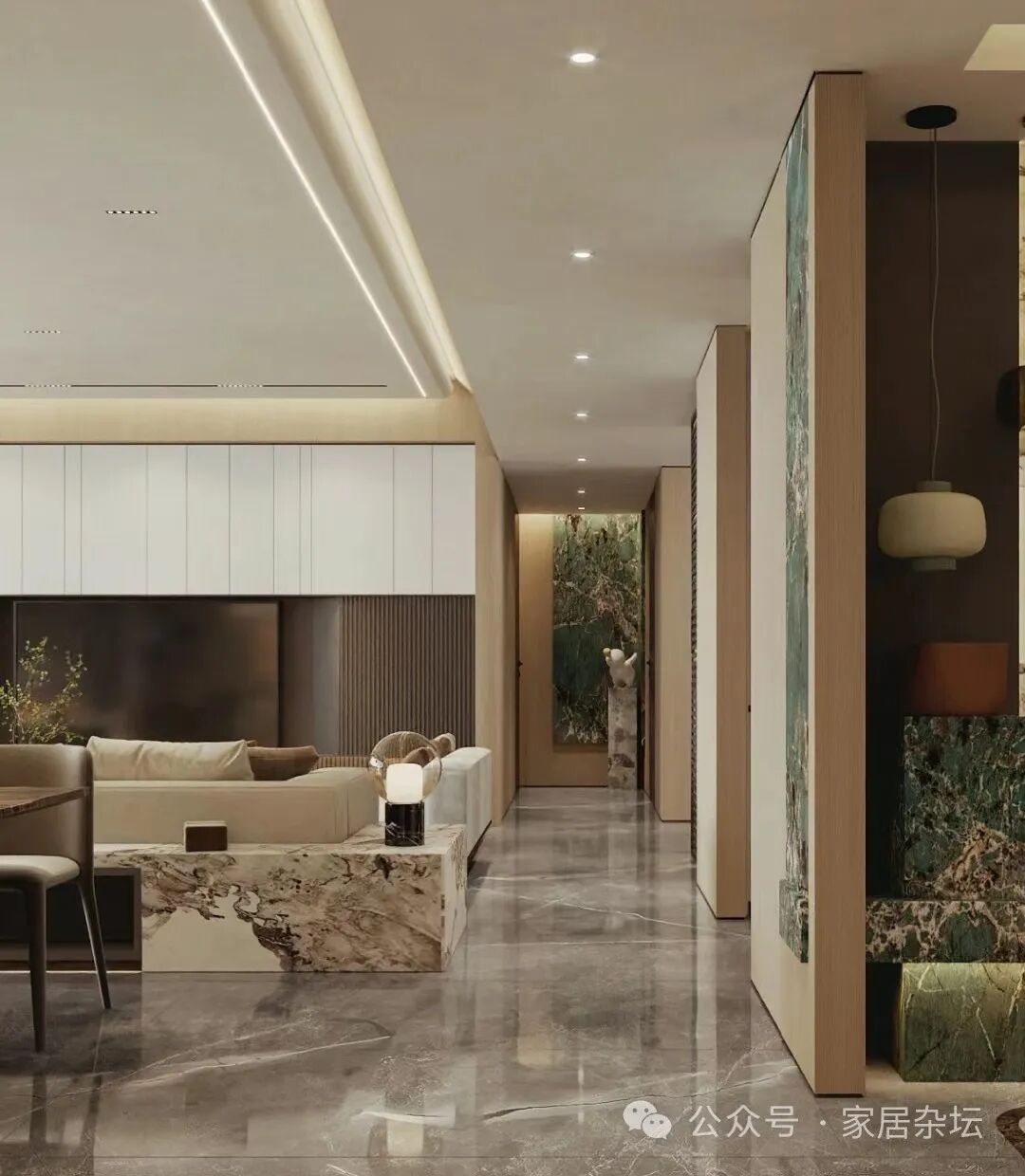 ③、意式轻奢风格,建议大家选择大花纹的石材砖。