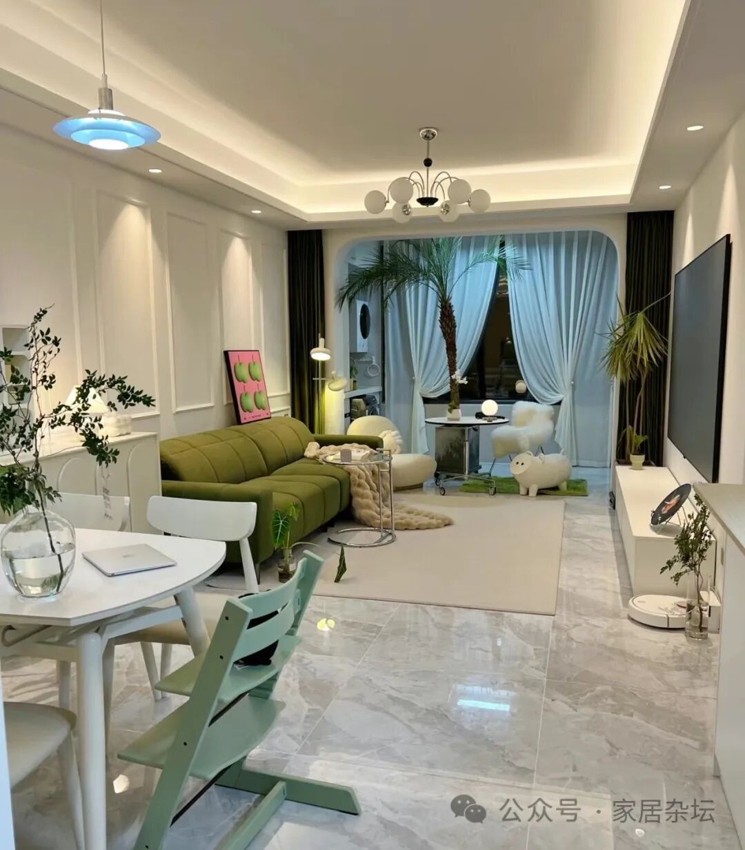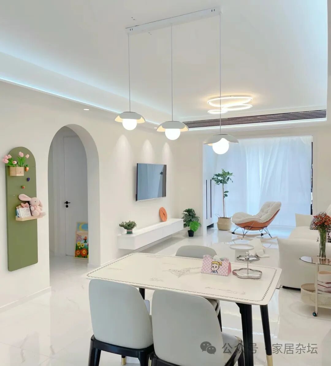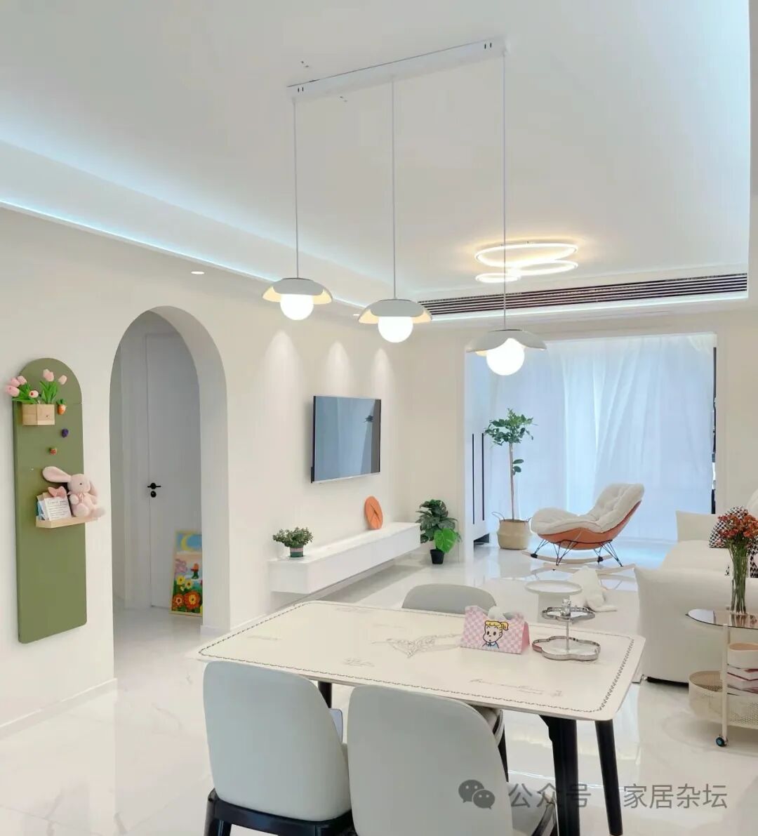 ①、让整个客厅餐厅会显得更亮堂。比如我们可以选择浅色的瓷砖,加上表面的光泽度的搭配,会让光线更好。