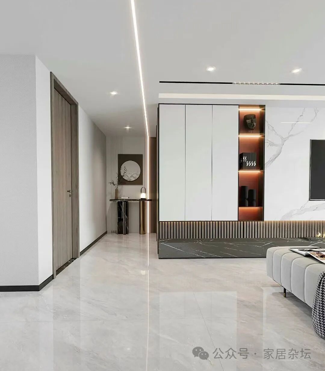 ①、通铺大规格尺寸的地砖。也就是说,我们要想铺瓷砖,就选择尺寸大一些的,比如800×800毫米,750×1500毫米的瓷砖,会显得很大气。