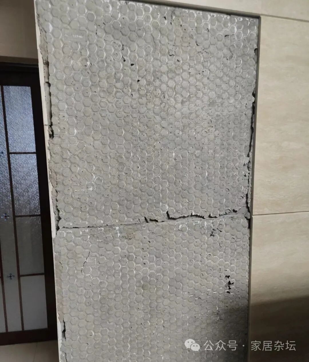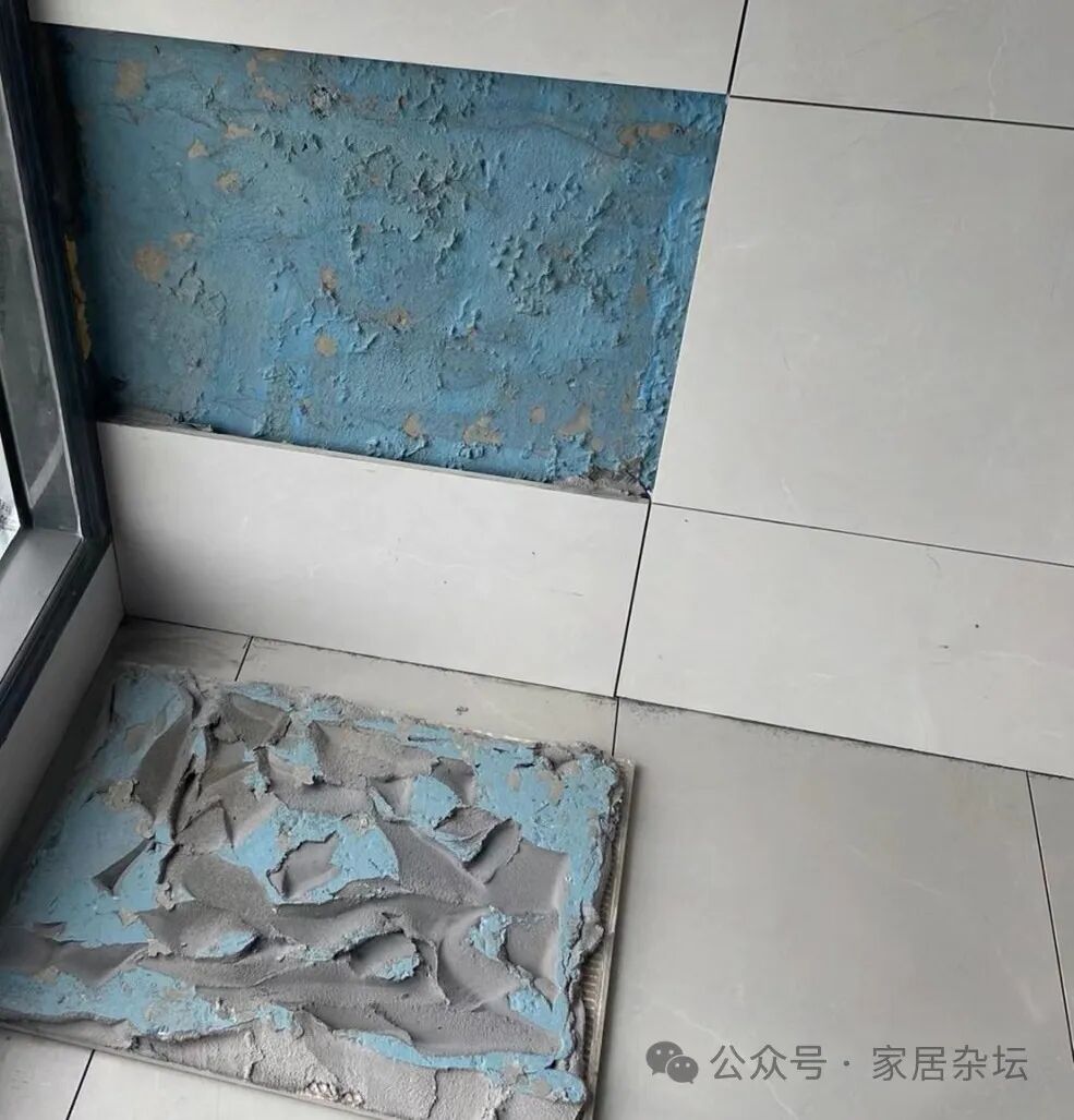 ②、存在空鼓脱落的隐患。因为大规格地砖上墙粘贴,很容易出现问题。常见的问题就是瓷砖的空鼓,严重的就是脱落。