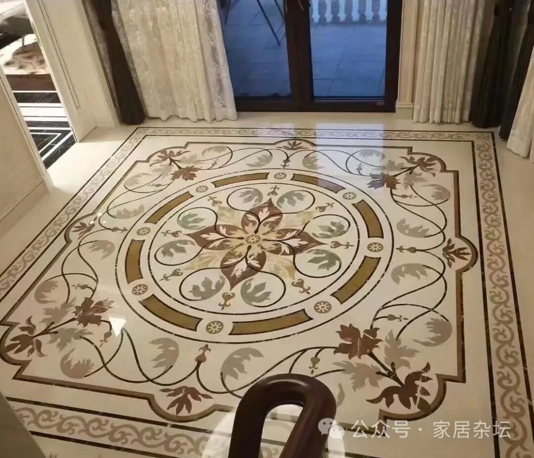 对于拼花地面,在一些酒店大堂或者别墅的大堂,可能还能见到。