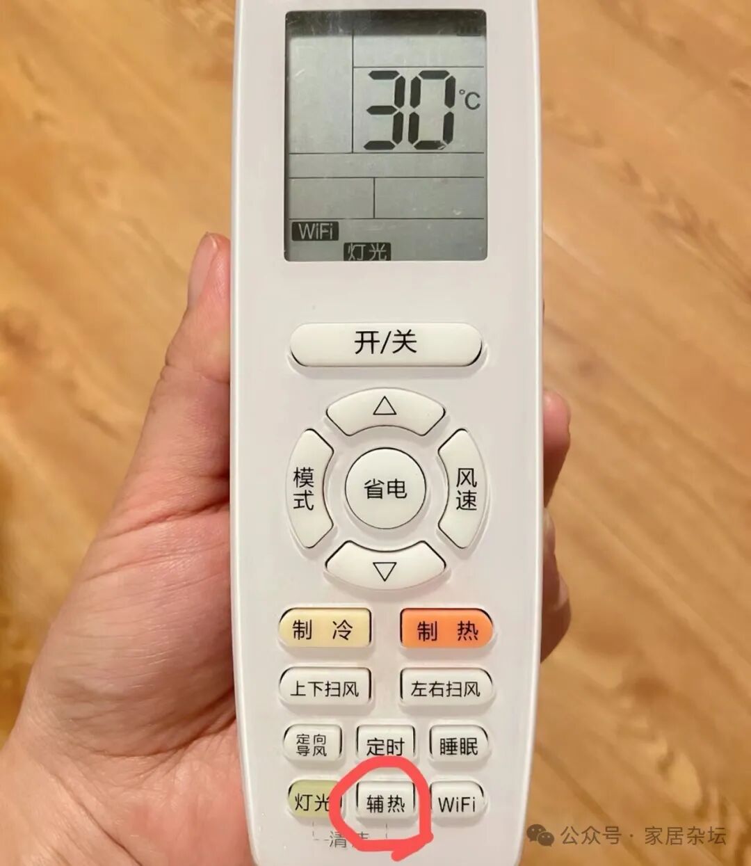 ②、开电辅热。对于空调制热来说,如果不开电辅热的话,效果一般都不是特别好。所以,这时建议大家打开电辅热。在遥控器上,一般都有这个功能。到这个阶段,一般就可以吹热风了。
