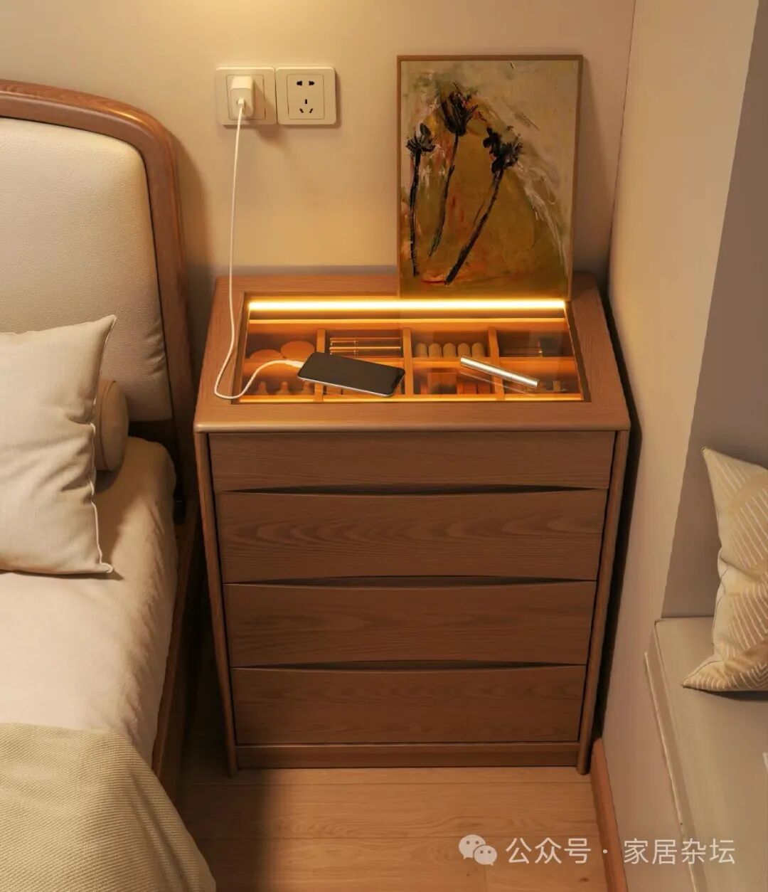 ①、床头柜非常占地方。特别是那些高端的实木床头柜,摆在床的两侧,每侧都要占50~60公分。有时候,衣柜门都打不开。