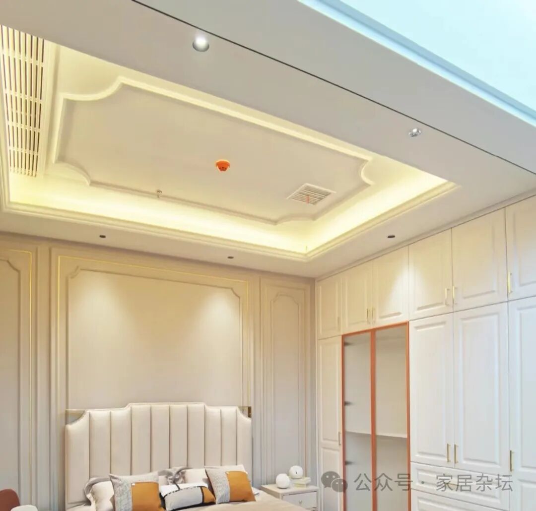 对于卧室的吊顶来说,也是建议做的简单大气: