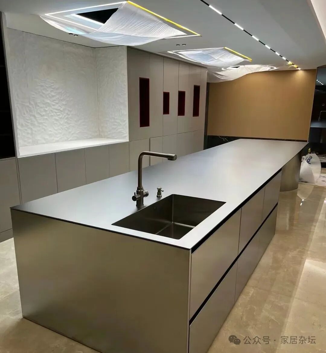 家庭厨房的台面,目前来说,其实主要的还是石英石台面。但是,你也会发现,越来越多人选择不锈钢台面。