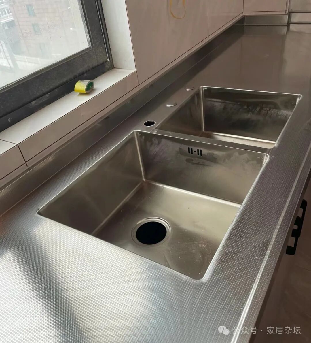 这里建议大家,要注意珠光不锈钢台面和菱格不锈钢台面的表面不是很平整,后期不好清洁。所以,选择的时候,一定要把这点考虑在内。
