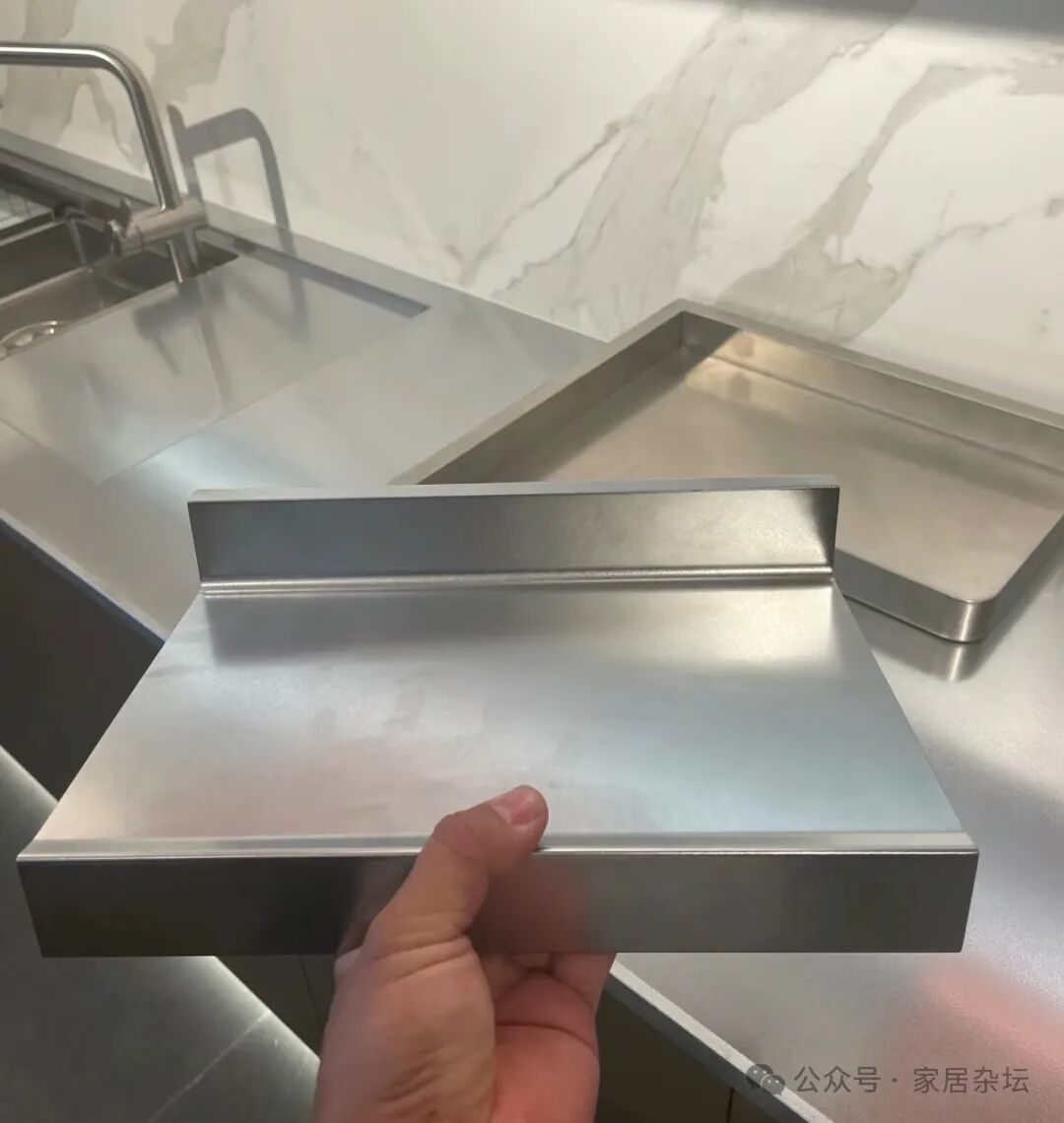 当然了,不锈钢台面也分成了很多种。其中廉价的不锈钢台面,给人的观感确实很差。但是,一些好的不锈钢台面,确实会让你越用越舒心。这也是给大家介绍不锈钢台面的原因。