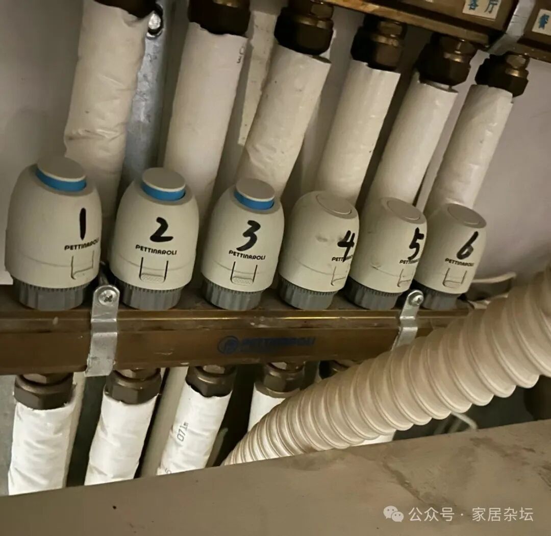 但是,地采暖的加热管道与分集水器连接的部分都是外露的,这部分我们是可以看得到的。