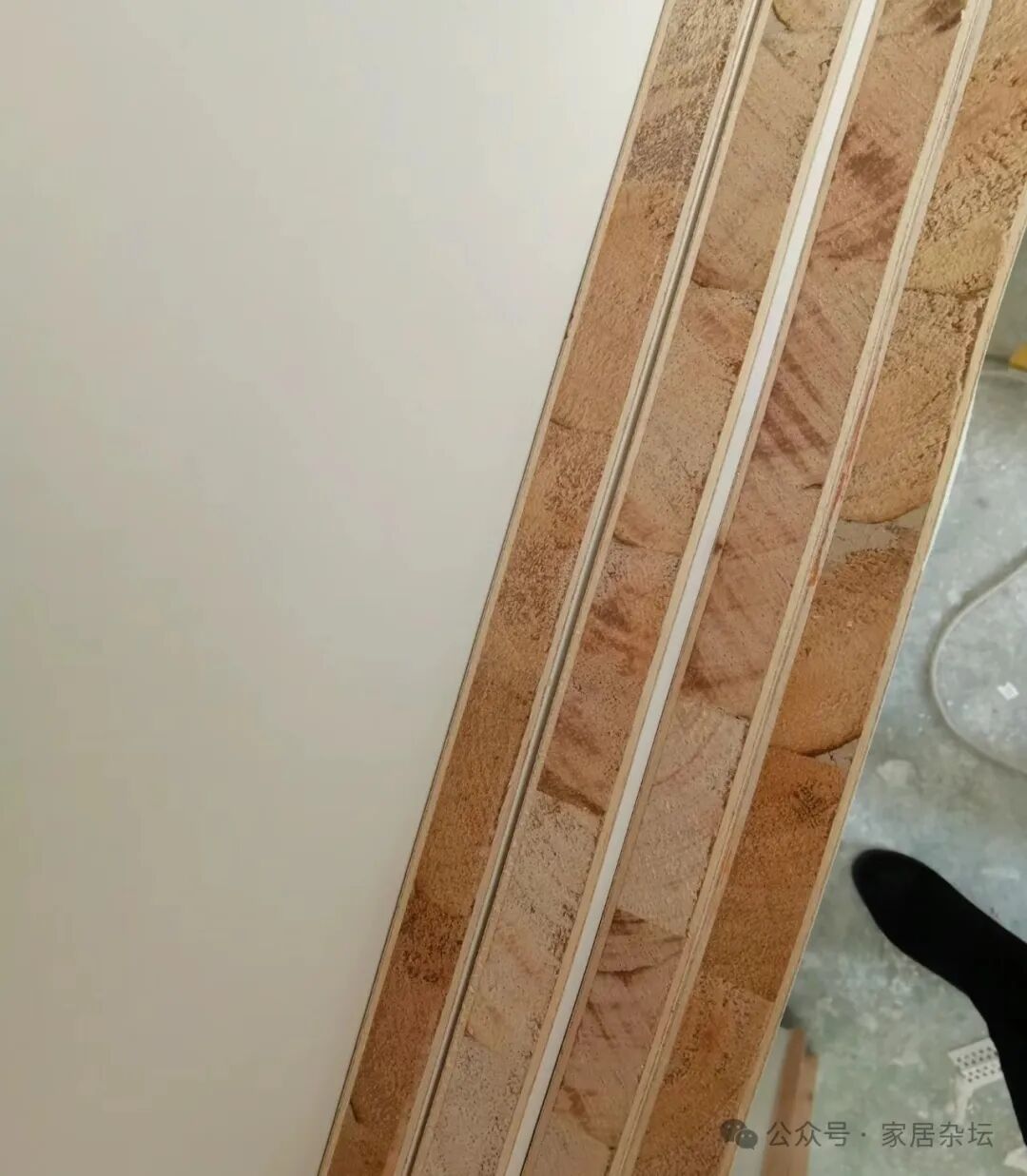 ①、内部所使用的木材,大家一定要清楚。由于基材木方的含水率和生产周期不同,可能会出现一些变形。如果这些基材受潮,不仅变形,还容易发霉。