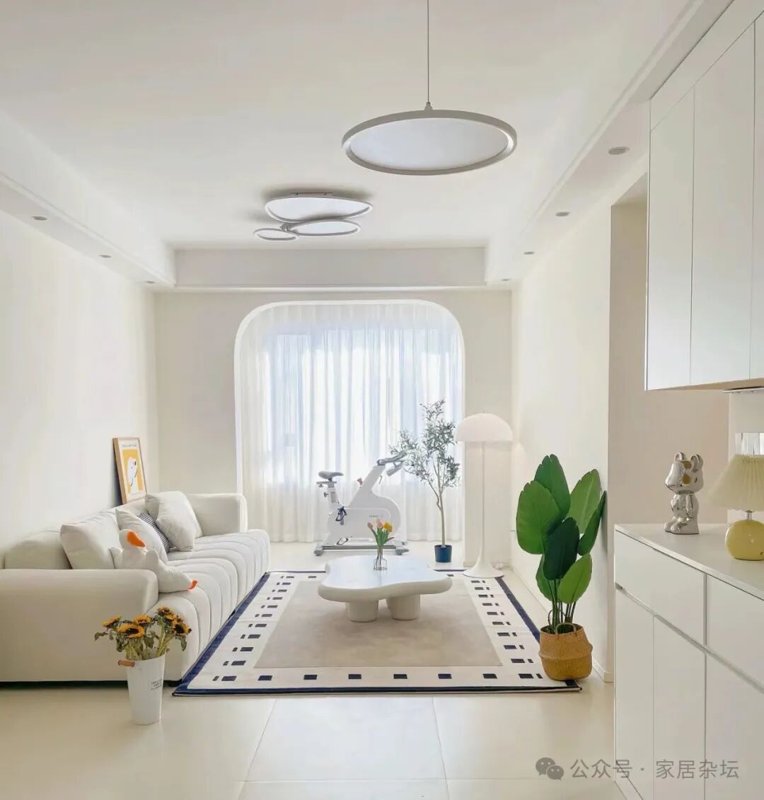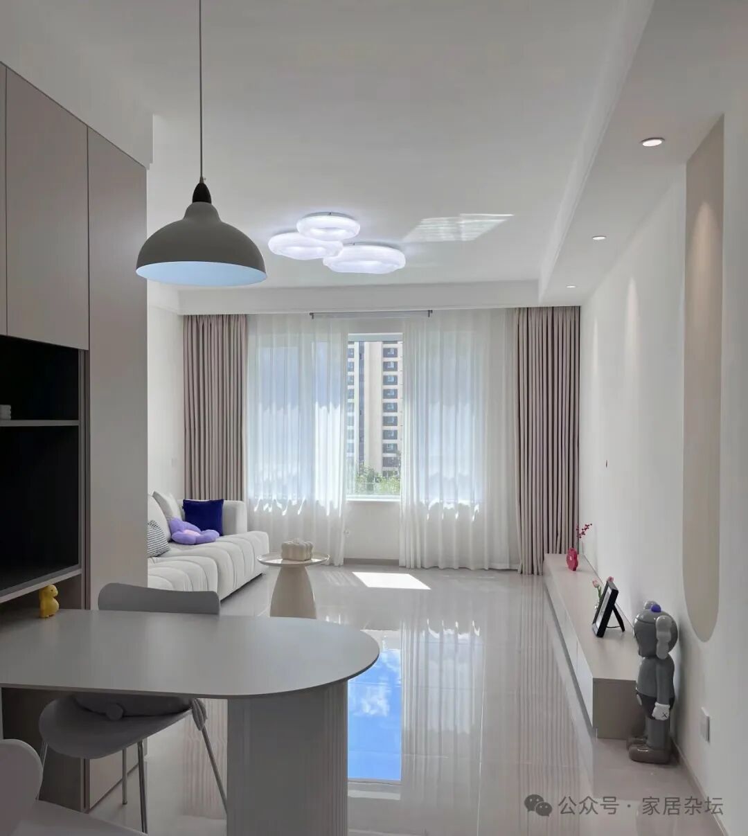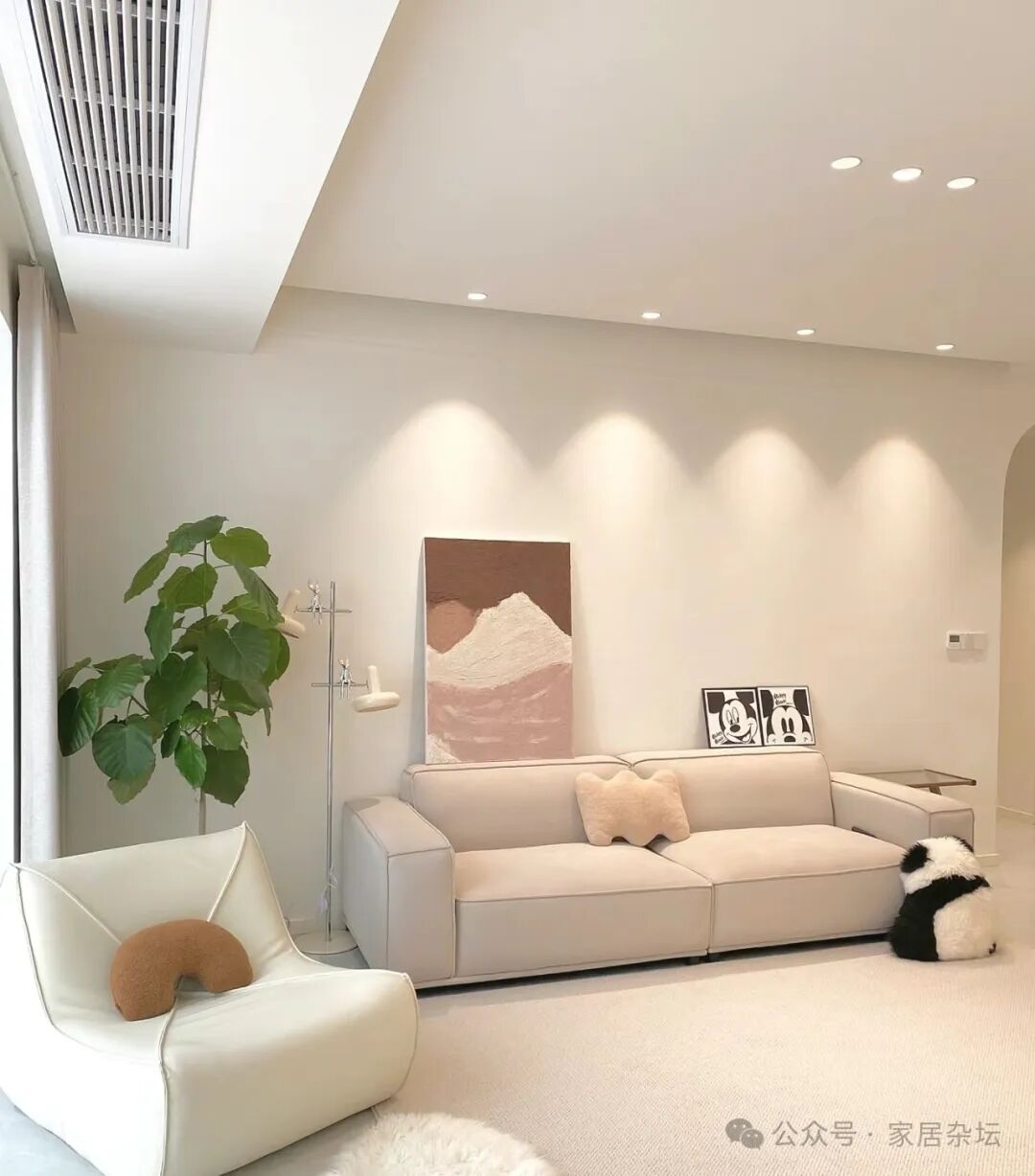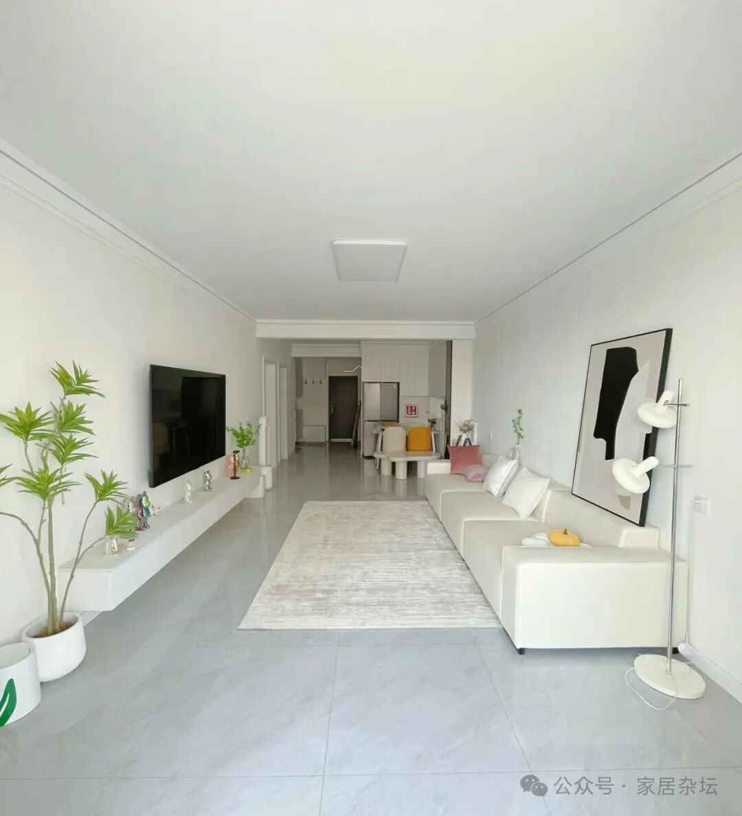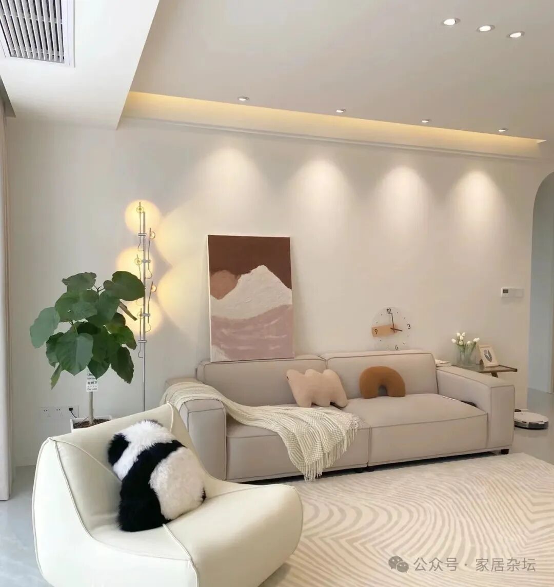 ⑤、对于家里使用率最高,空间相对比较大的客厅来说,一般建议大家选用低饱和度的浅色系乳胶漆。这类乳胶漆,也可以刷出高级感和通透感,让客厅显得宽敞、大气,让人呆在客厅也会感觉更加的舒畅。