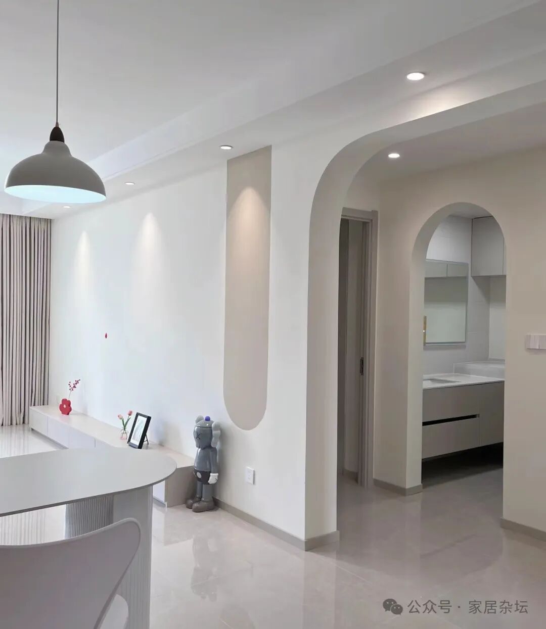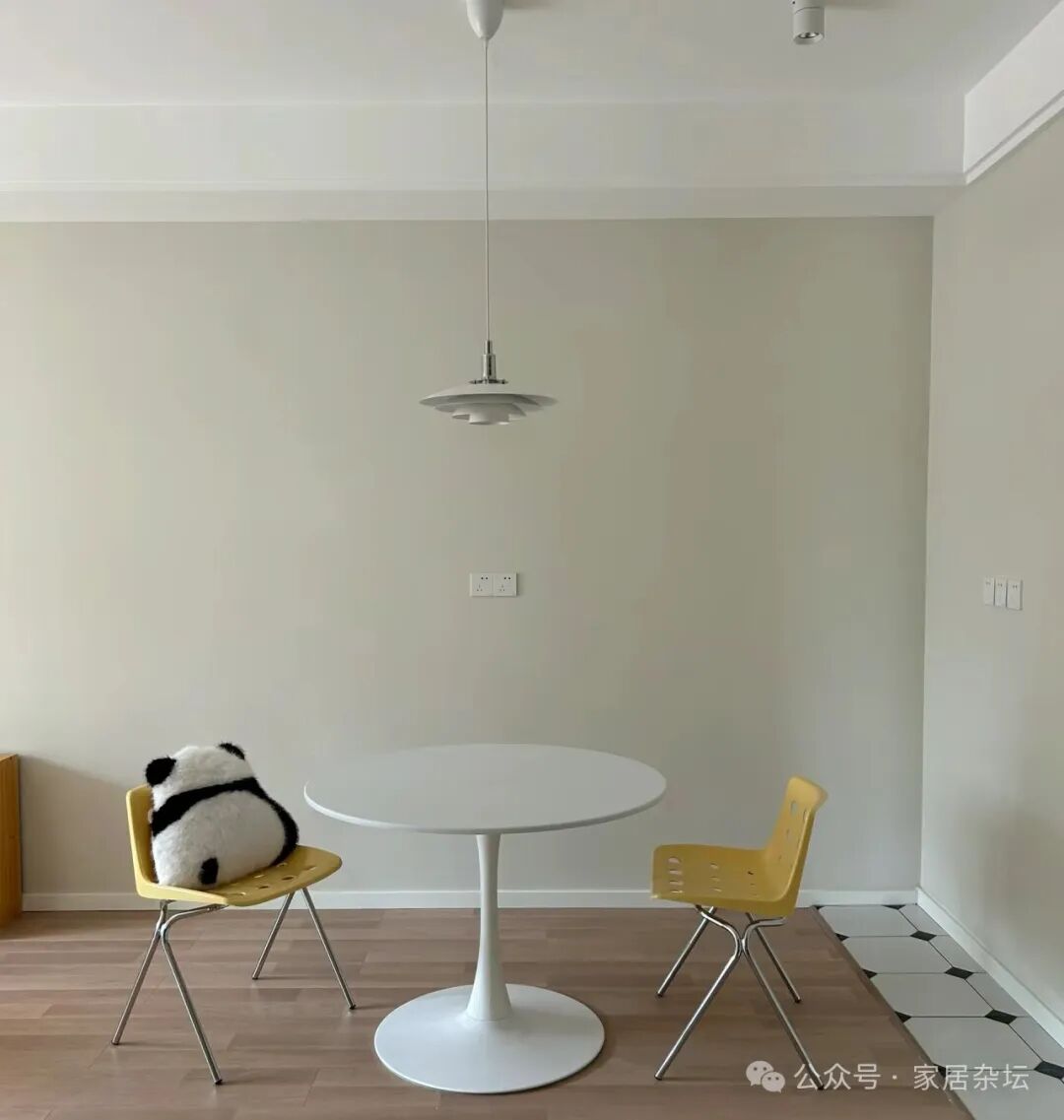 ①、对于小空间来说,一般建议大家选择浅冷色系的乳胶漆。这样可以在色调上,实现视觉上的放大空间,能够让我们的这个空间显得更明亮,更宽敞、通透。