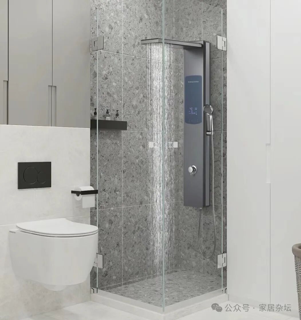①、在外观上,显得更高端更大气。我们装在卫生间,例如可以装在淋浴房,也可以装在浴房外,都可以让卫生间的档次很高。