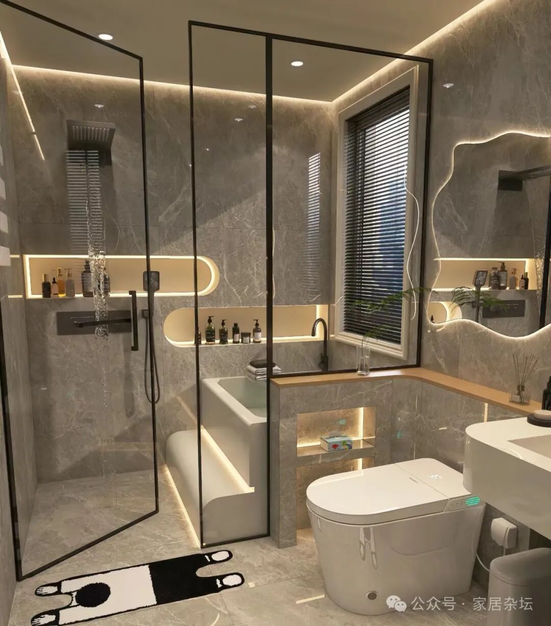 ③、卫生间会显得更加的昏暗,而且感觉更加的憋闷。这也是卫生间内塞得满满当当的,带来的非常严重的一个问题。