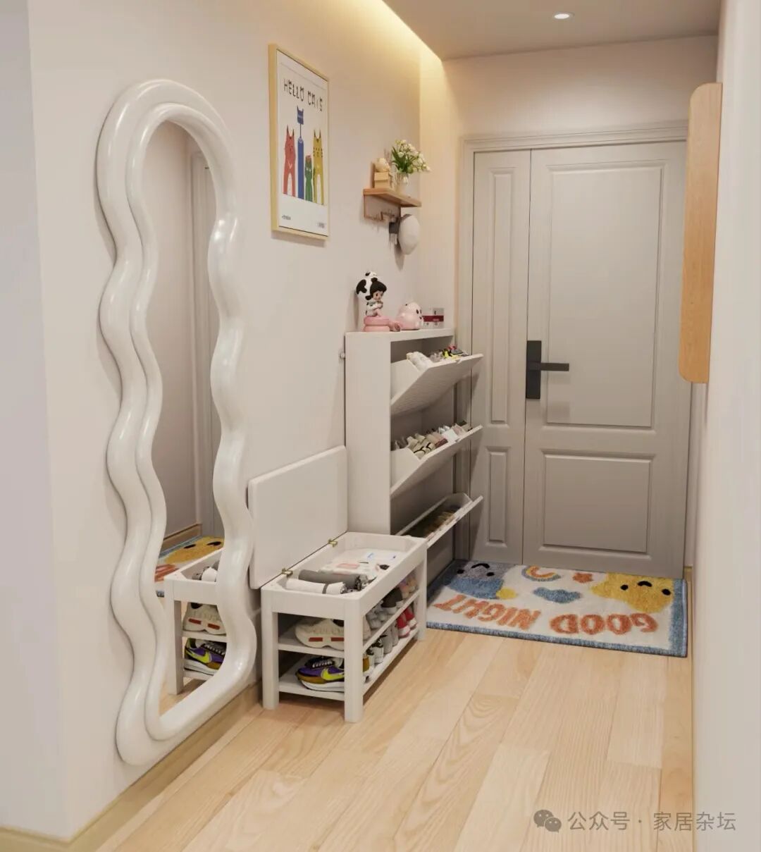 例如有的朋友在玄关的位置设计成了鞋柜,有的设计成了储物柜。