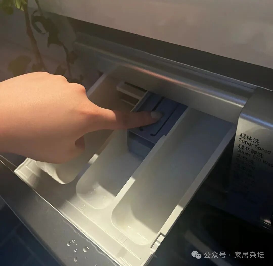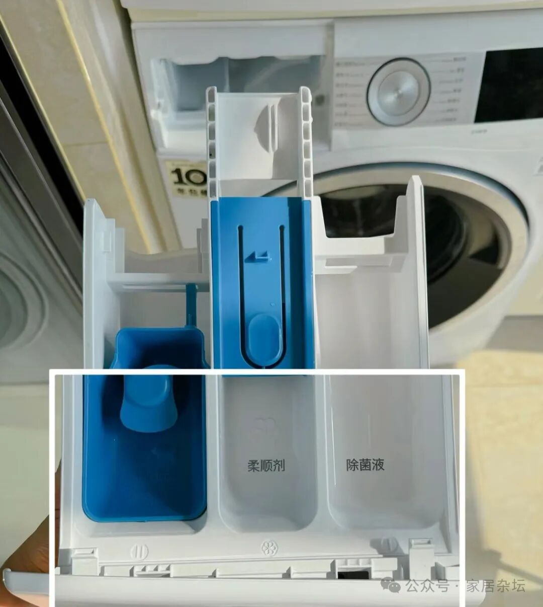 其实,还有一些朋友认为这三个格子都没什么用,直接把洗涤液放在衣服里。