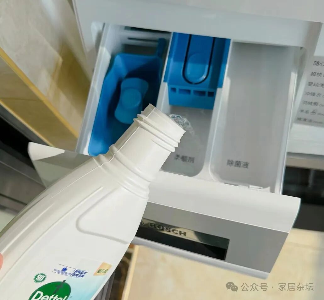 所以,在这个期间,都会从这个格子取洗涤剂。一般来说,消毒液也是可以加在这里。