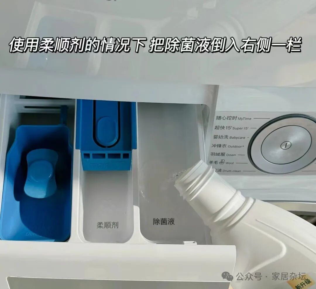 如果需要消毒的话,那么建议大家,主洗涤剂格子内加入洗涤剂,而预洗涤剂盒里可以加消毒剂。对于柔顺剂,一般不加的话就不要用。