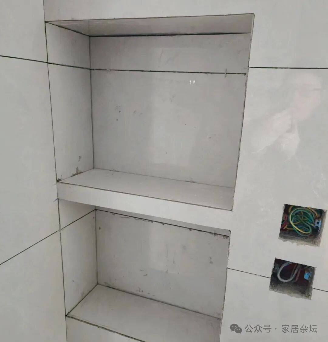 ②、壁龛内积水,导致缝隙发霉变黑的问题。住个一两年,你会发现壁龛里面黑乎乎的。如果壁龛缝隙没美缝,还可能导致墙体反潮。