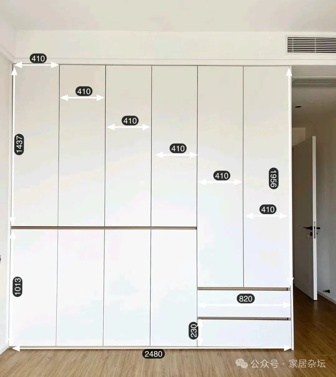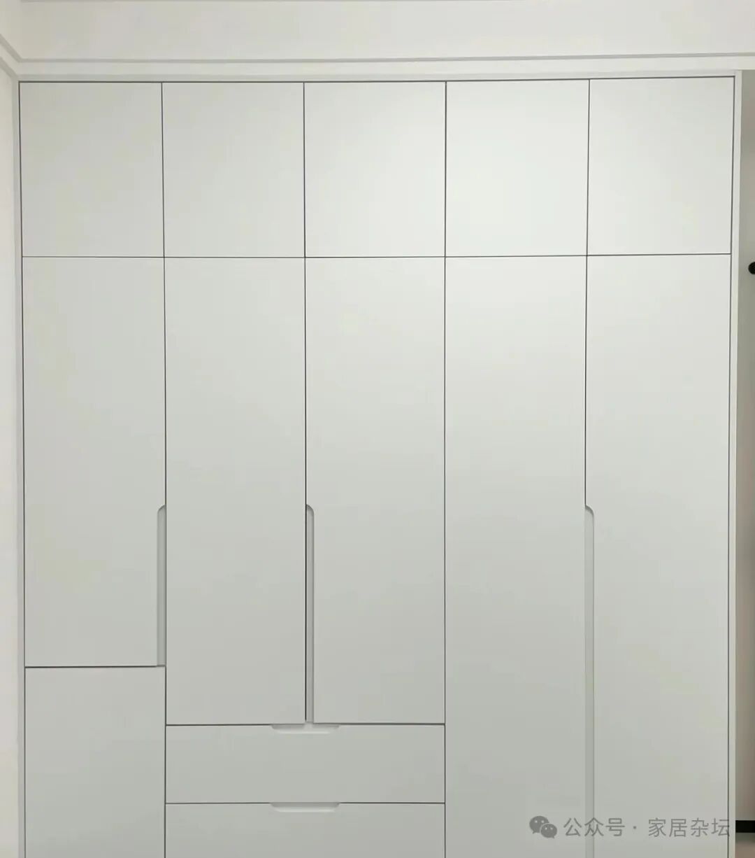 ②、其实个人更建议大家,可以考虑现阶段出现的分段式设计的衣柜。虽然不如因一门到顶的衣柜那么整体协调,但是它更科学,更耐用。