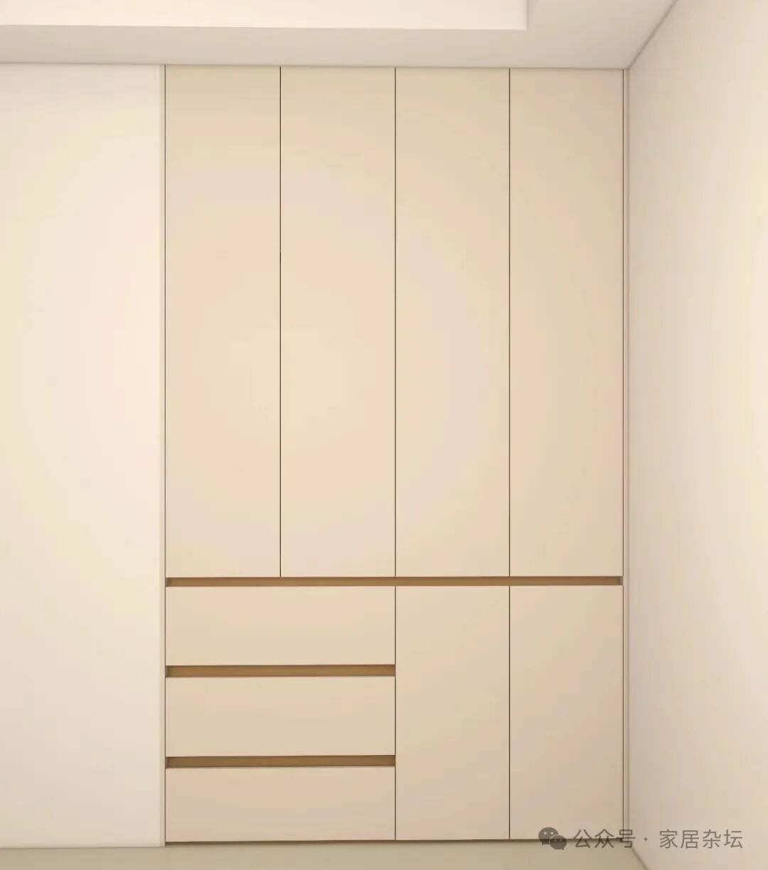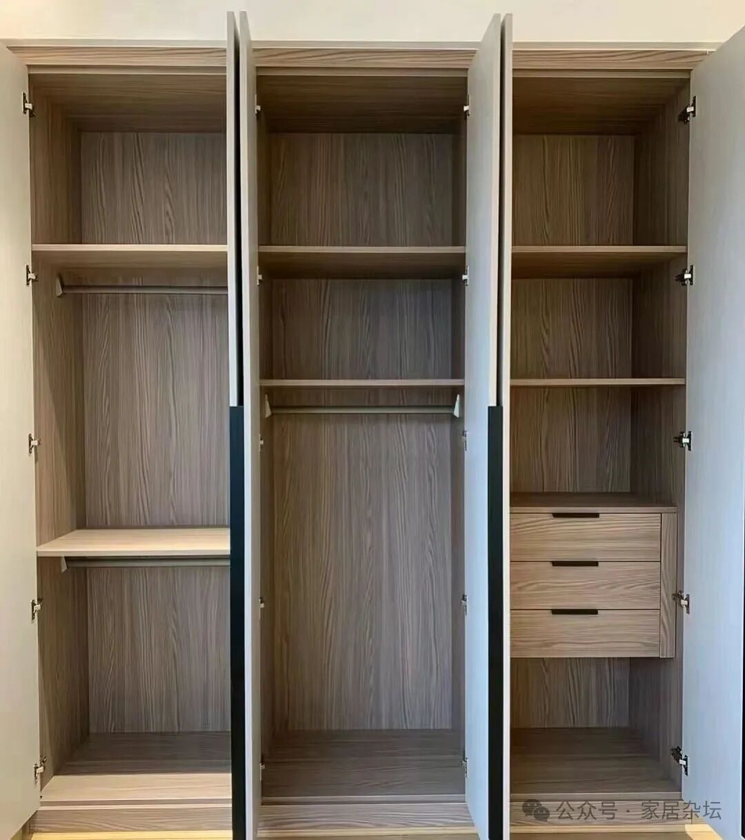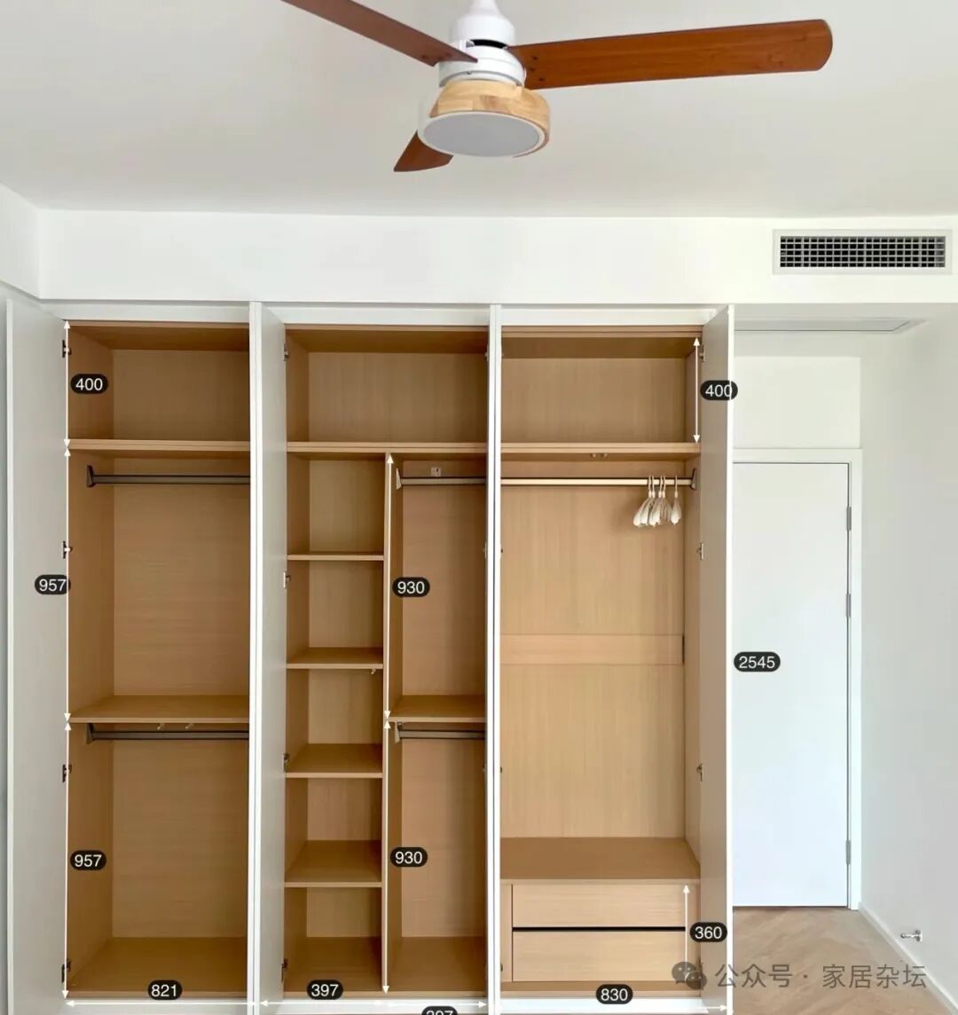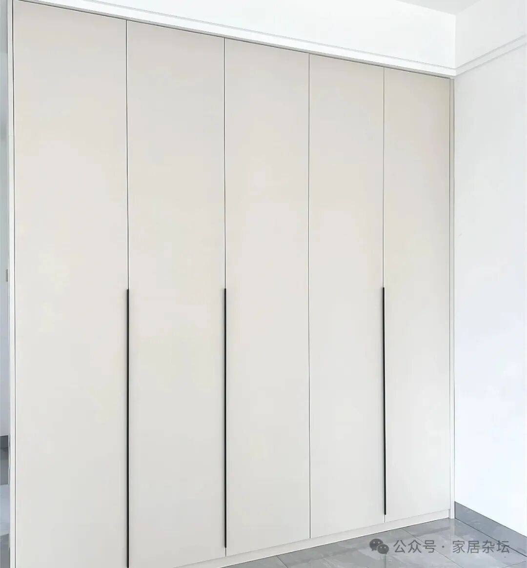 ①、对于家里柜子的置物区,比如挂衣区,储藏区这些部位,建议大家尽量选择传统的板材的柜门,而一定要避开玻璃柜门。