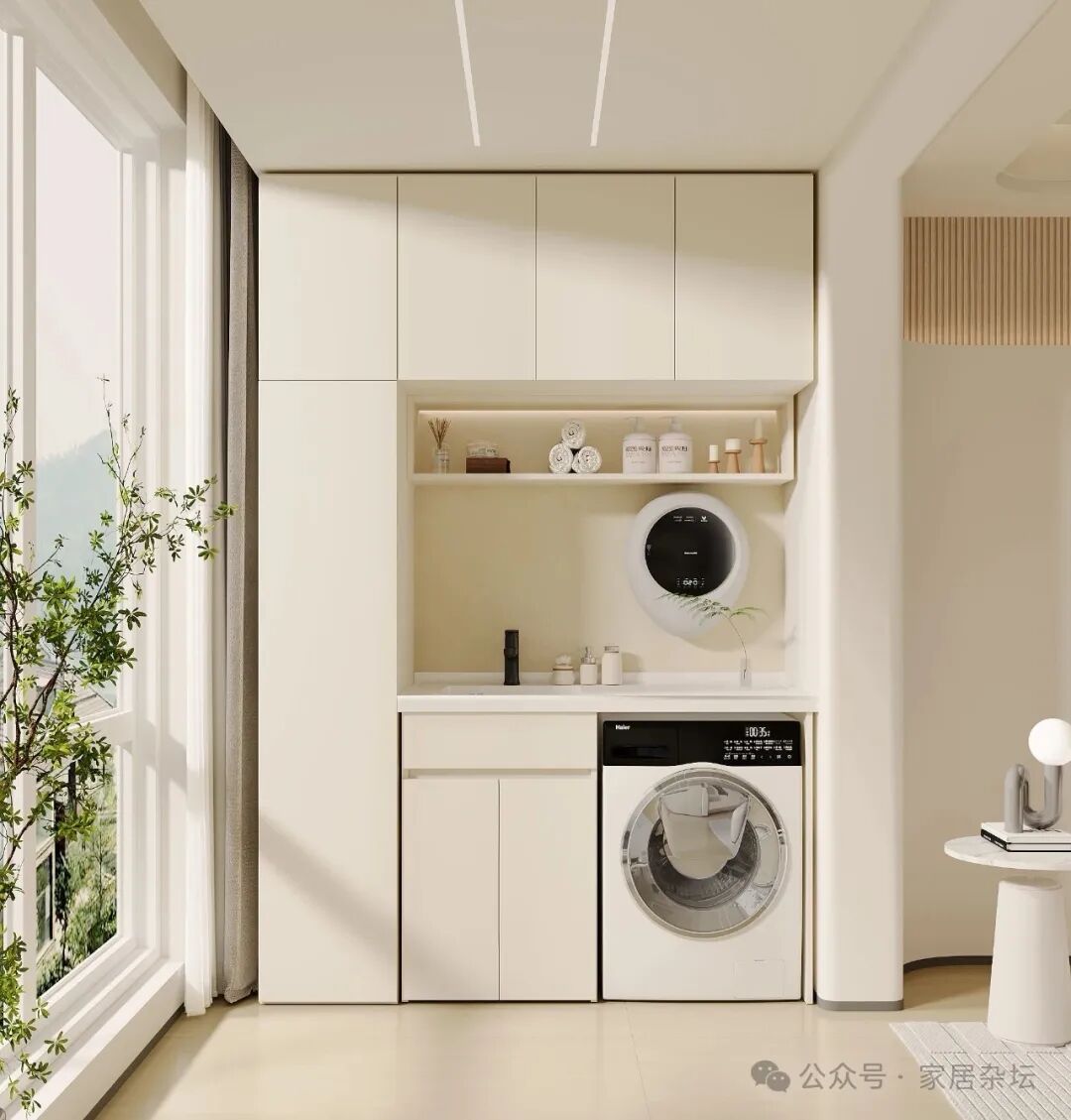 只是,我们在装修的时候要提前考虑好洗烘套装的安装。