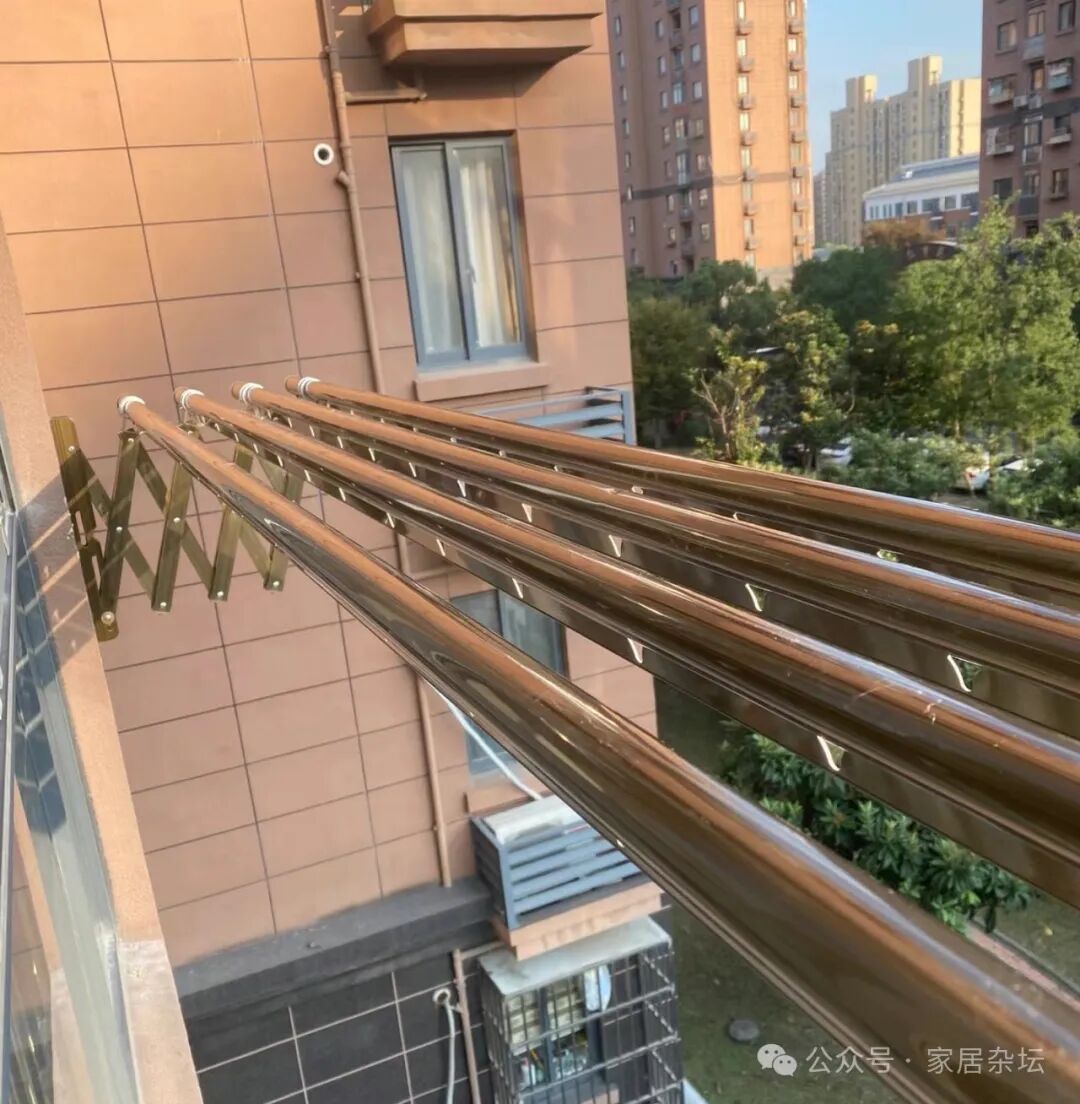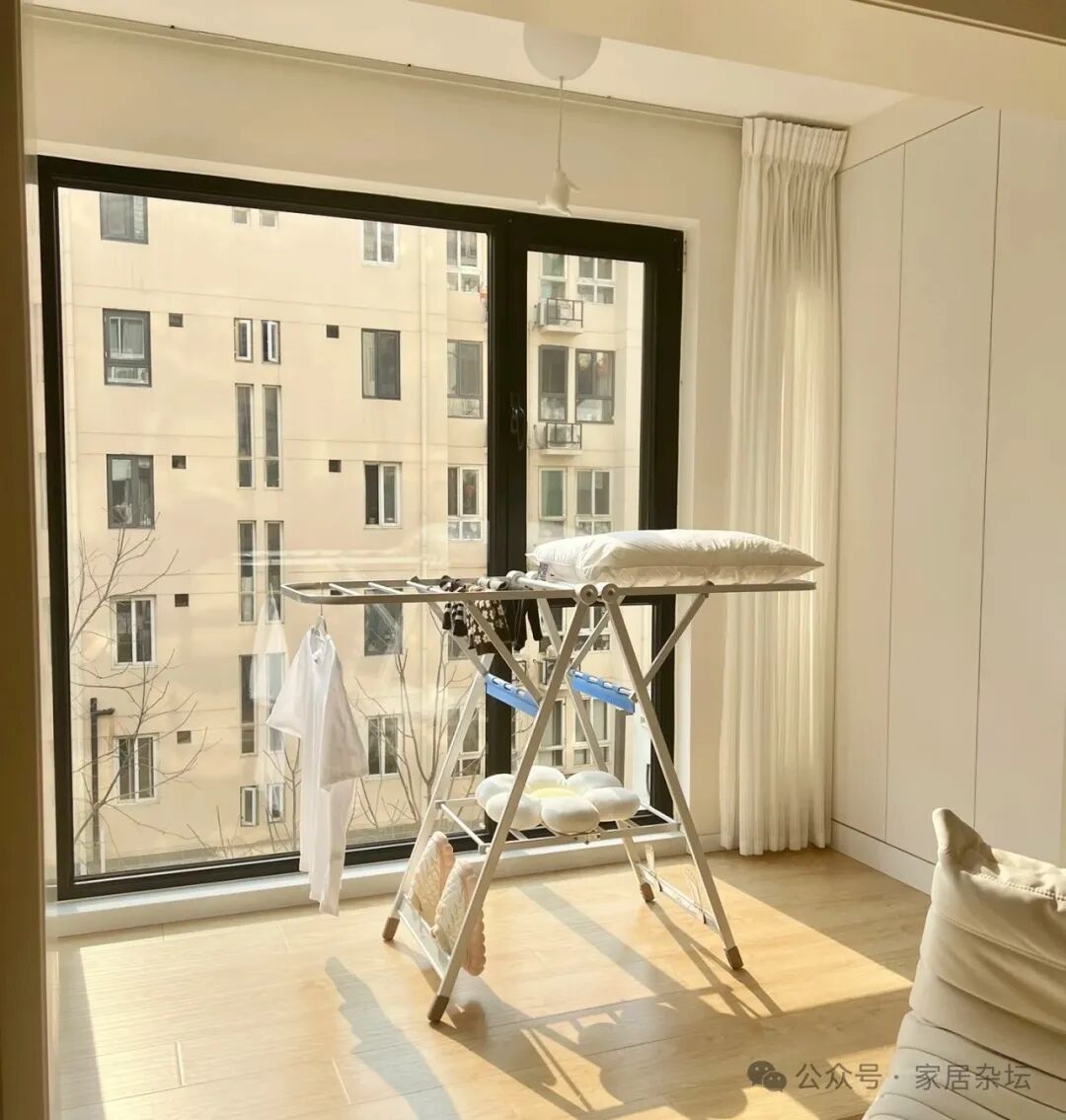 ①、窗外晾衣架,也满足了日常阳光照射的需求。因为很多朋友喜欢把洗完的衣服让阳光晒一段时间,有阳光的味道,感觉很舒服。