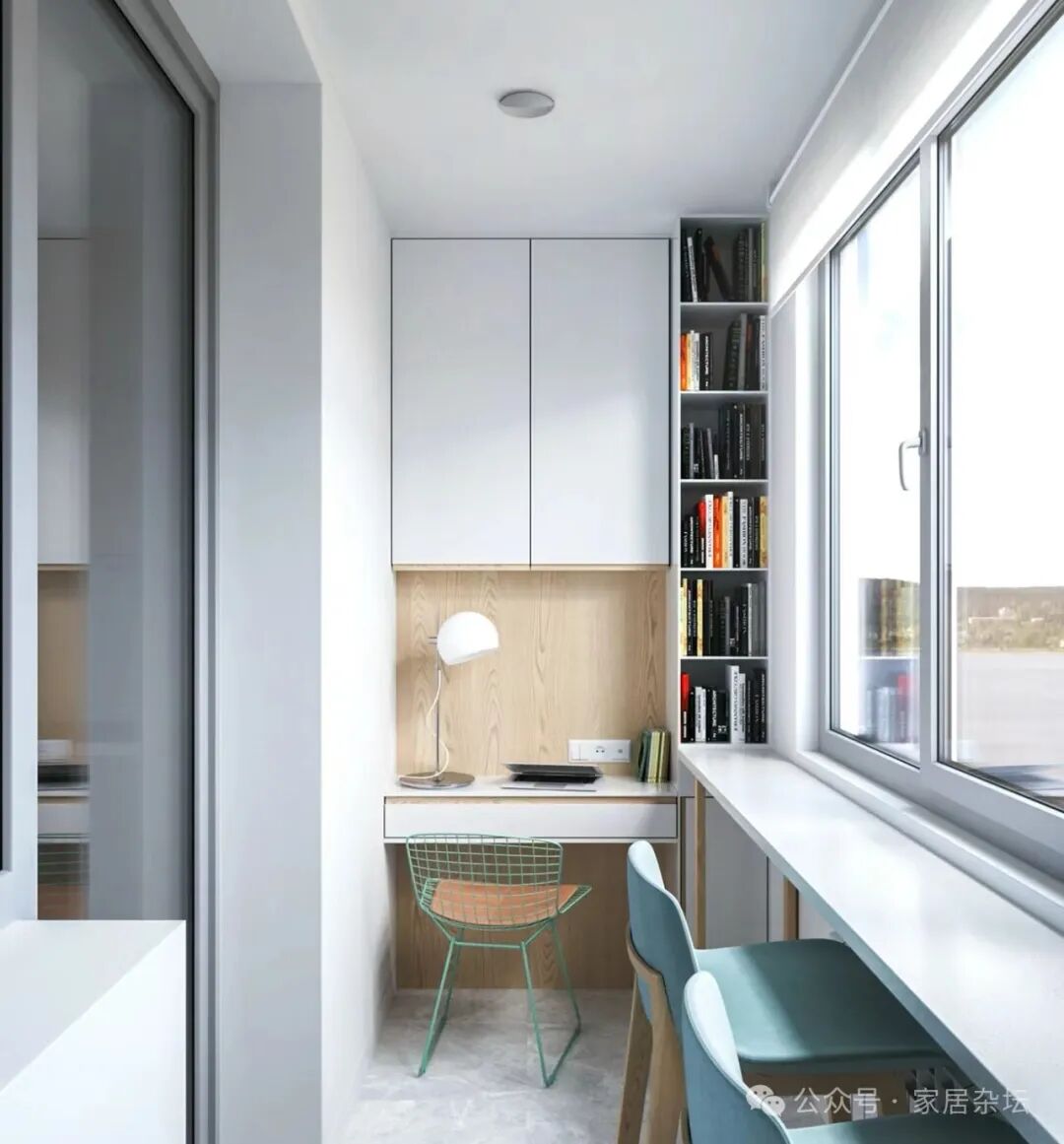 特别是对那些小户型来说,如果找不到一个好的地方设计书房,那么阳台确实可以考虑起来。