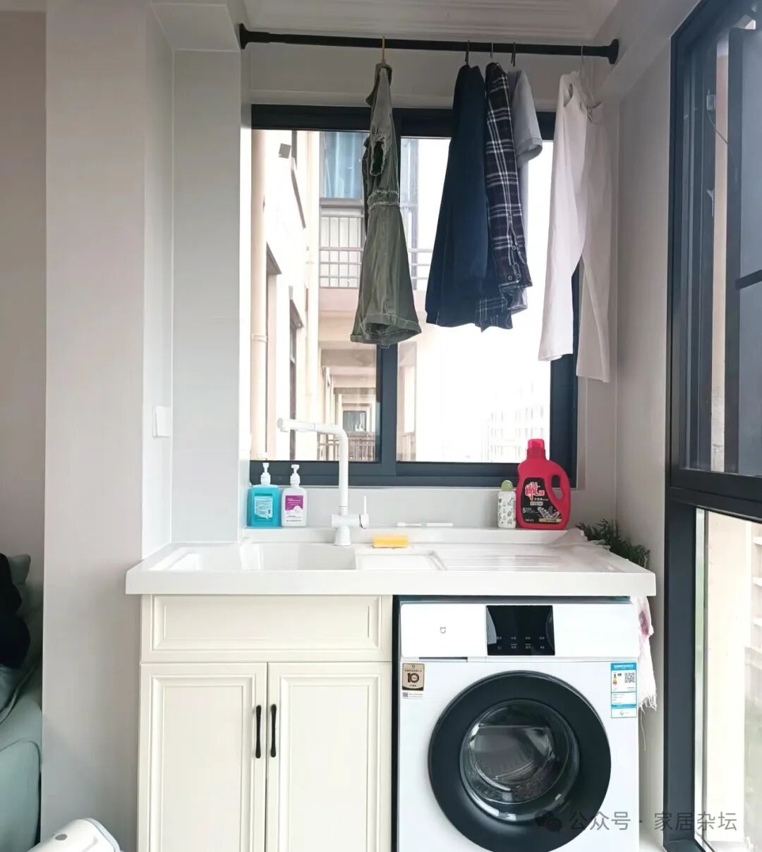 做法也很简单,就是放弃传统的阳台柜和晾衣架。