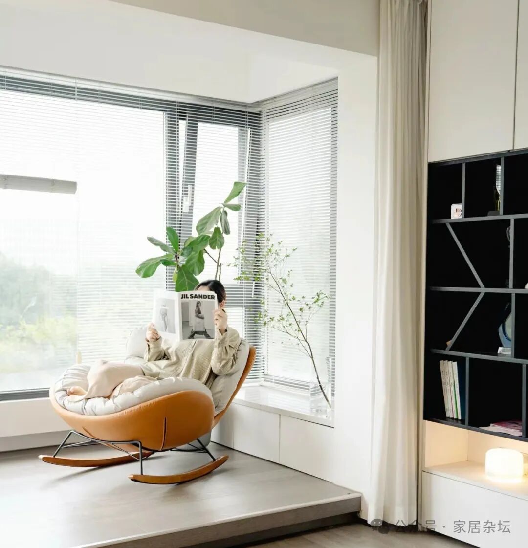 阳台不再用来晾衣服,第四种比较好用的方案,就是设计成小憩阳台。