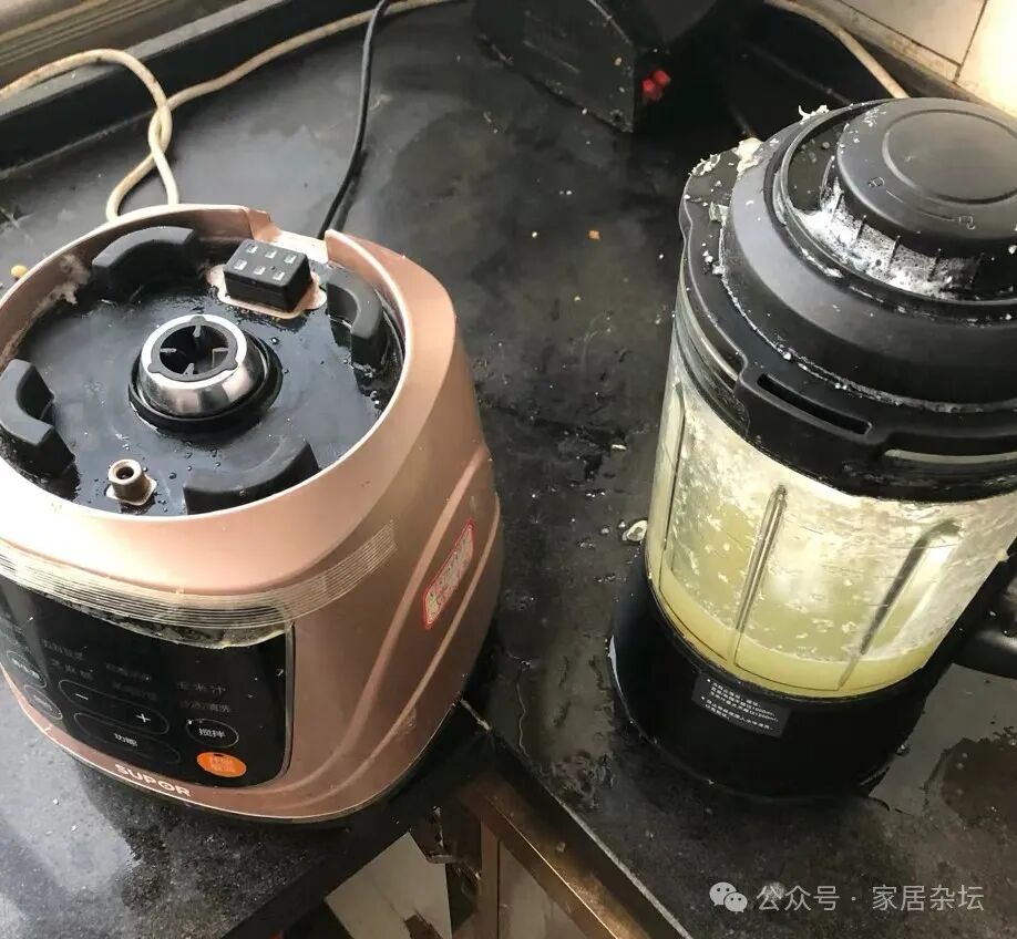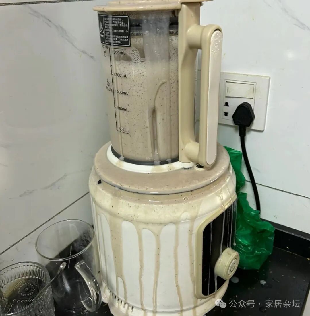 ①、容易出现外溢的问题。如果我们稍微掌控不好,那么就发现豆浆机里的豆浆溢出来了。豆浆机外面,甚至台面上,到处都是豆浆。