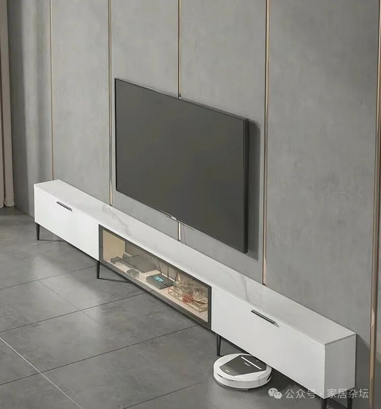 最常见的做法就是落地电视柜留30公分,悬挂电视柜留45公分。