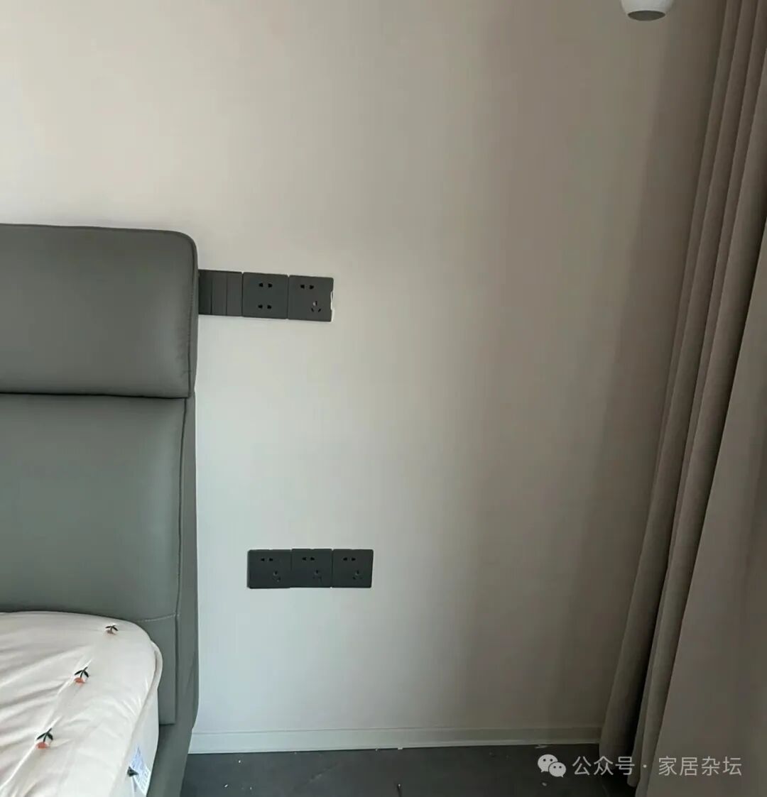 ②、虽然床头插座的标准高度应该是70公分,但是如果我们没有控制好床的距离,有可能插座又被床挡住了。