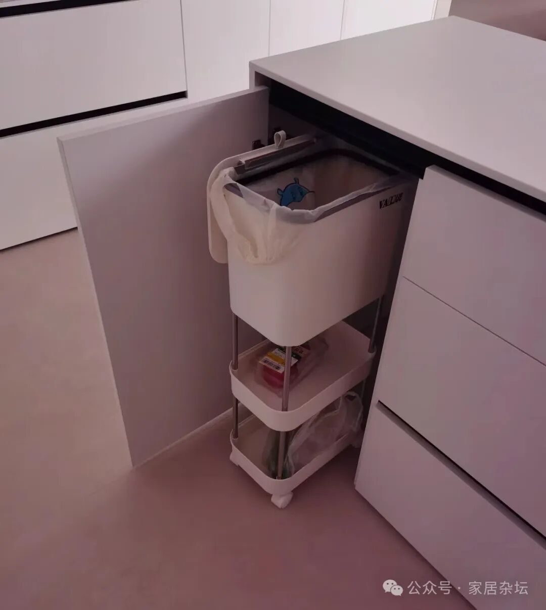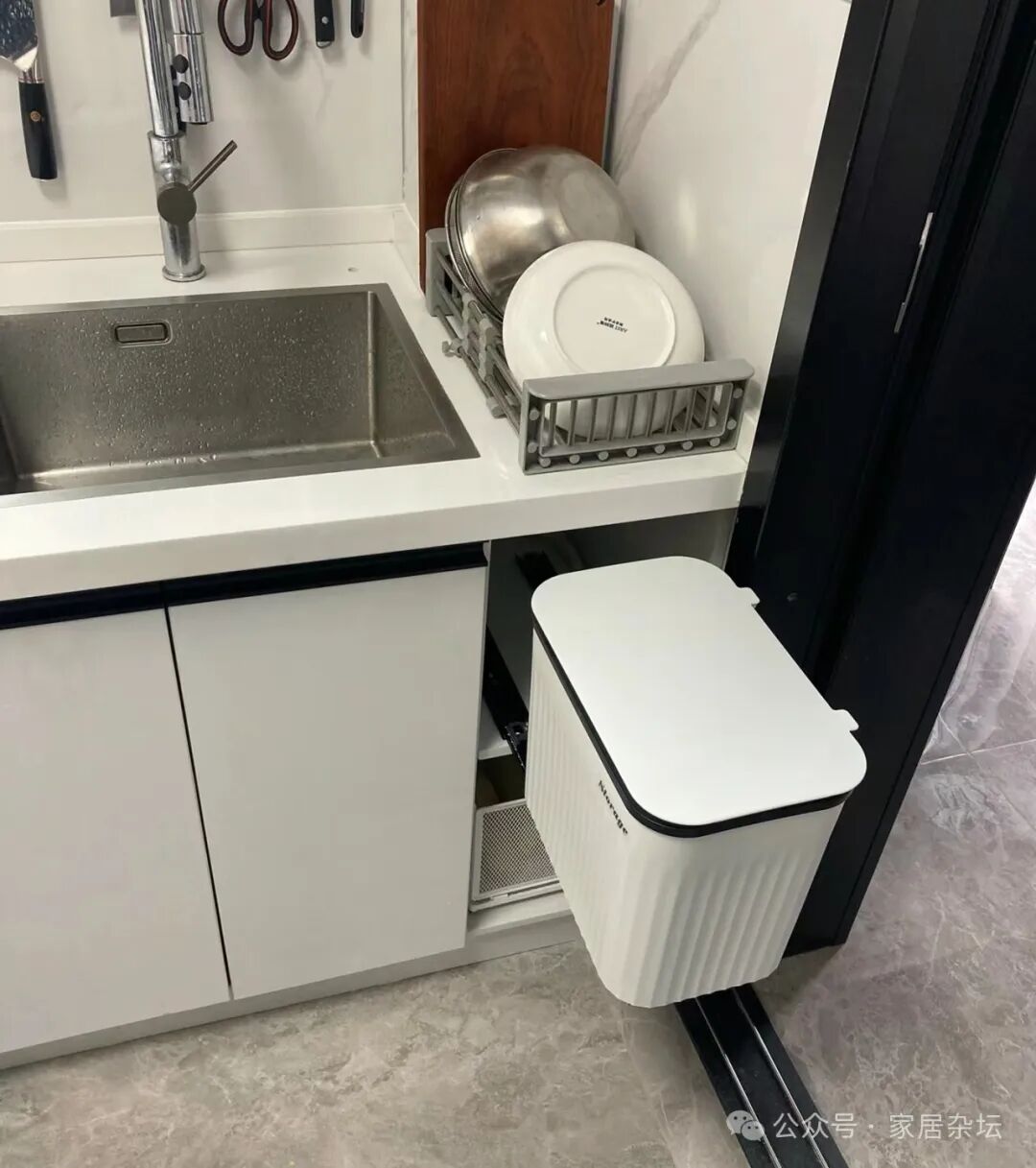 隐藏式垃圾桶,最大的好处就是平时看不见垃圾桶,让厨房显得更干净整洁。
