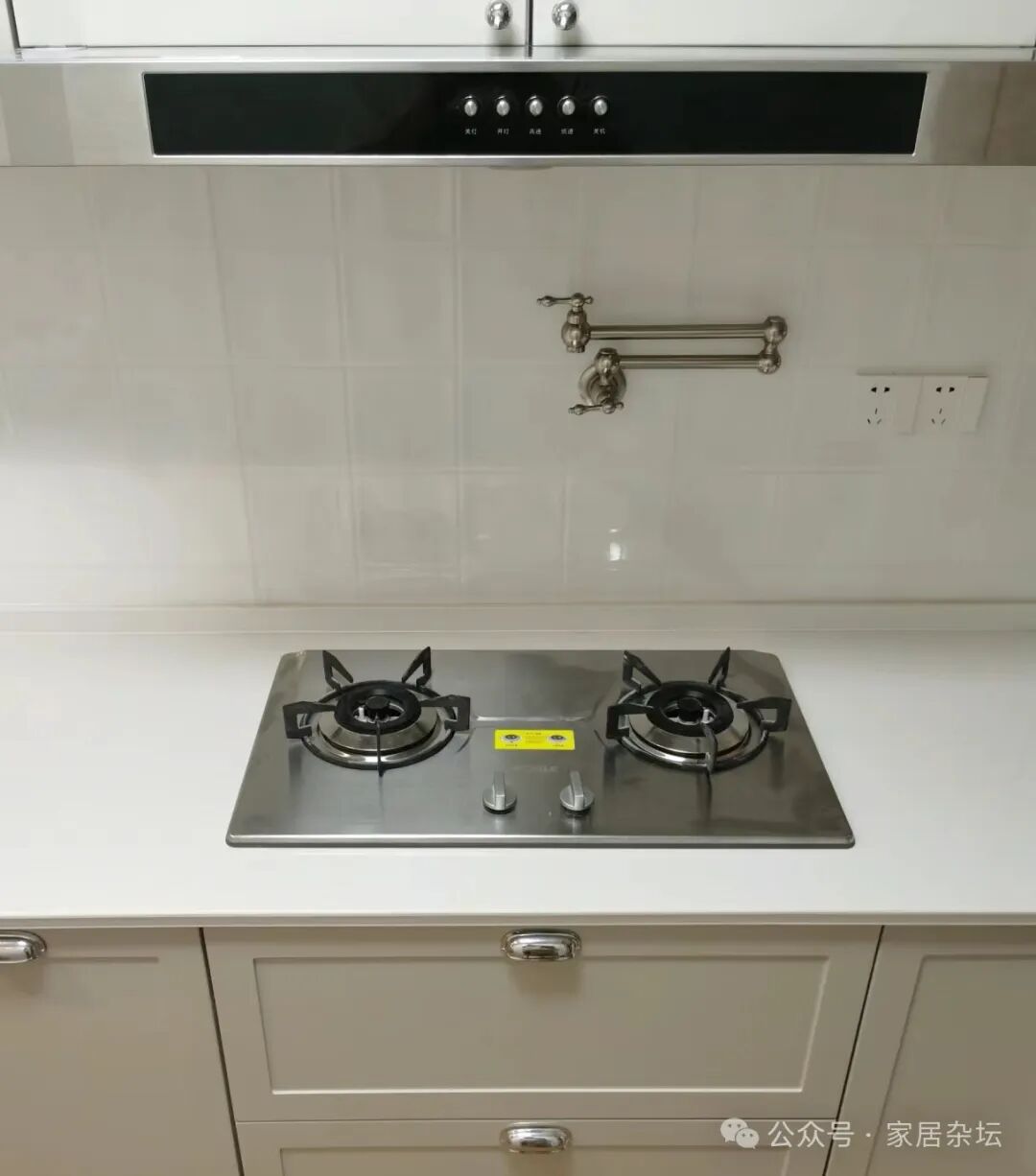 其具体的做法,就是在灶台区域,例如后侧的墙体上或者是侧面墙体上,安装一个水龙头。