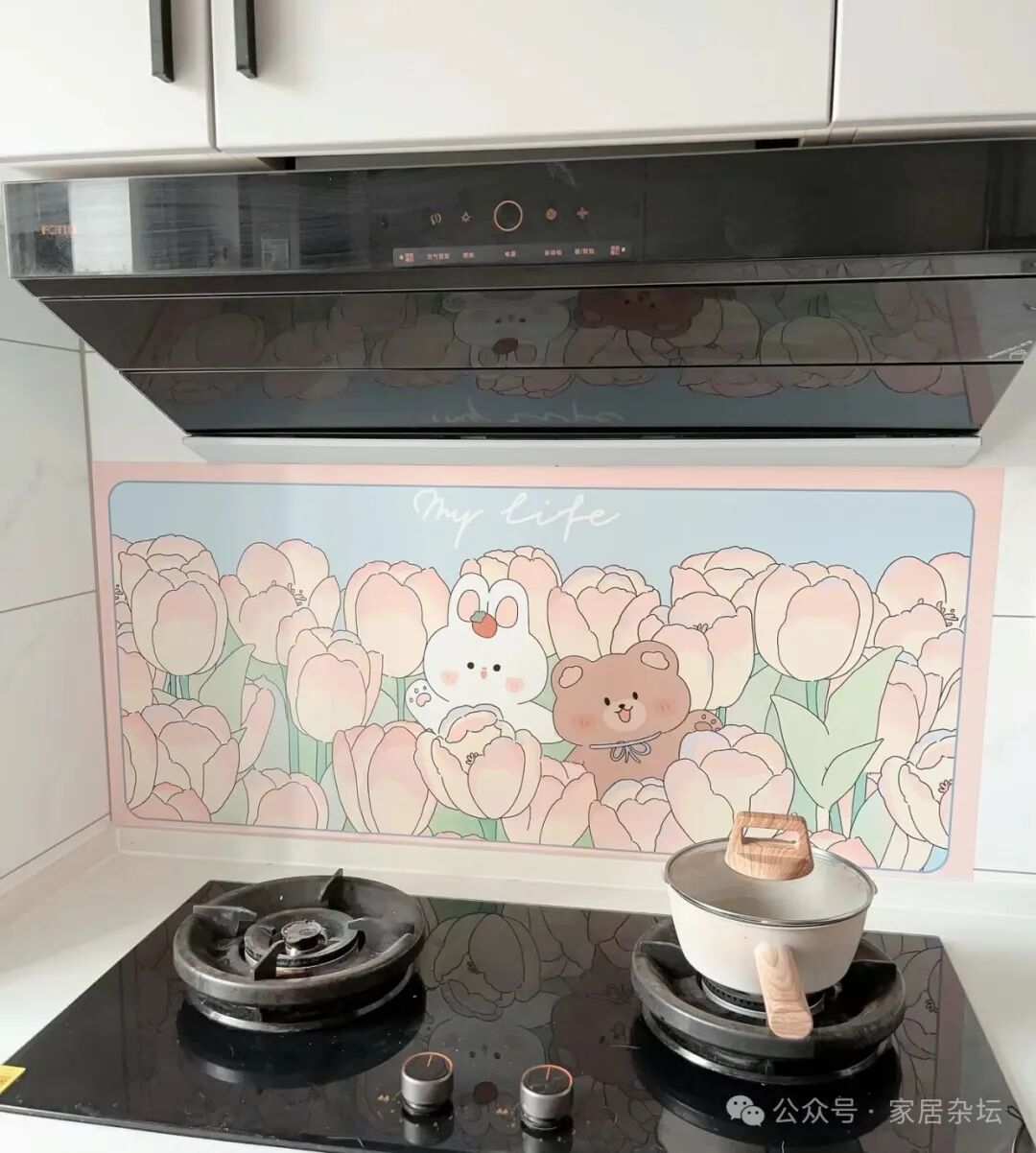 ①、墙面上总是油乎乎的,时间长了粘在墙面上非常的难擦。因为每次炒菜的时候,油可能就会溅出来,溅到墙面上,最终都粘到了这面墙上。